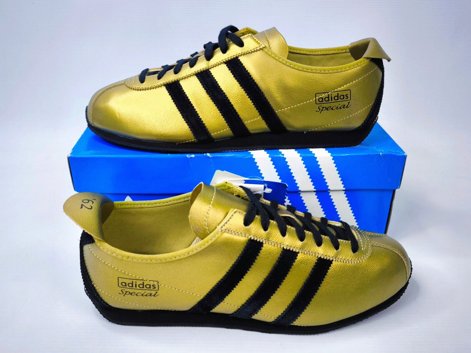 ________________________________________Marke: adidasModell: Handball SpecialModell: UK 13.5 / US 14 / Eur 48 2/3Farbe: blau / weiß Zustand: getragen______________________________________Beschreibung:Die Schuhe wurden getragen und befinden sich in einem guten Zustand.Trage- und Gebrauchsspuren am Obermaterial, ganz klar im Innenbereich und an den Laufsohlen seitlich.Die unteren Laufsohlen sind in einem sehr guten Zustand mit wenigen Gebrauchsspuren.Altes adidas Modell original aus den 1980er Jahren.Modellvariante noch:Made in West Germany. ________________________________________ Material:100% Wildleder / 100% Gummi