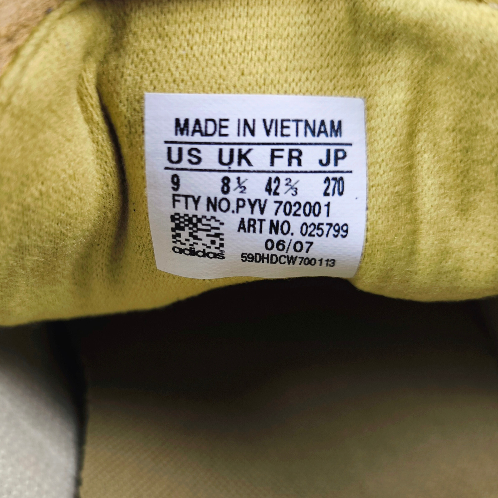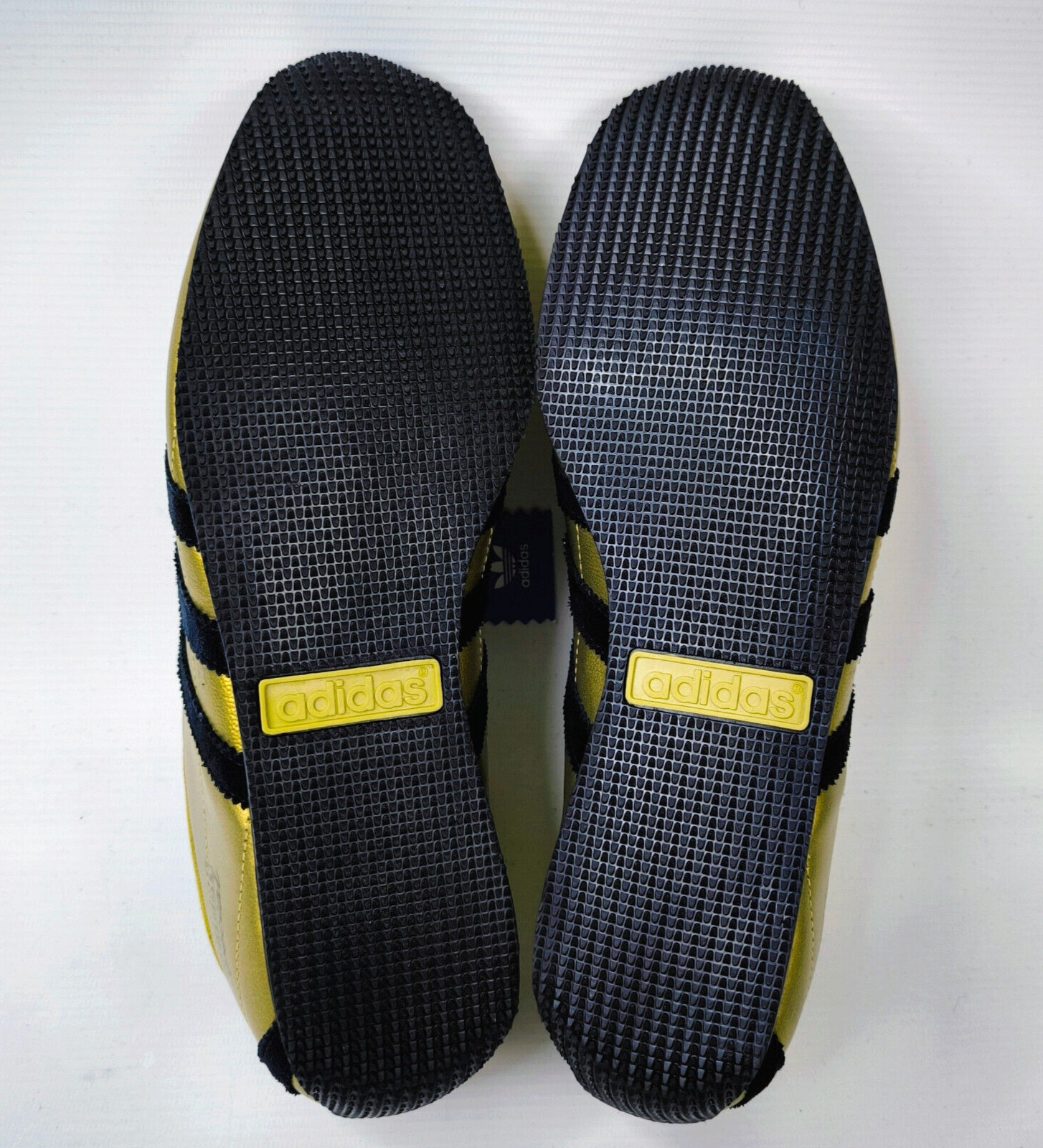 ________________________________________Marke: adidasModell: Chile / 451807Größe: Eur 45 1/3 / UK 10.5 / US 11Farbe: schwarz / gelb Zustand: getragen_______________________________________Beschreibung:Die Schuhe wurden getragen und befinden sich in einem absolut guten Zustand.Edition Brasil 1950.Es sind leichte Trage- und Gebrauchsspuren am Obermaterial, im Innenbereich sowie leichte Trage- und Gebrauchsspuren an den unteren Sohlen zu erkennen.Toller adidas Chile aus dem Jahr 2005 in einem getragenen und superguten Zustand.