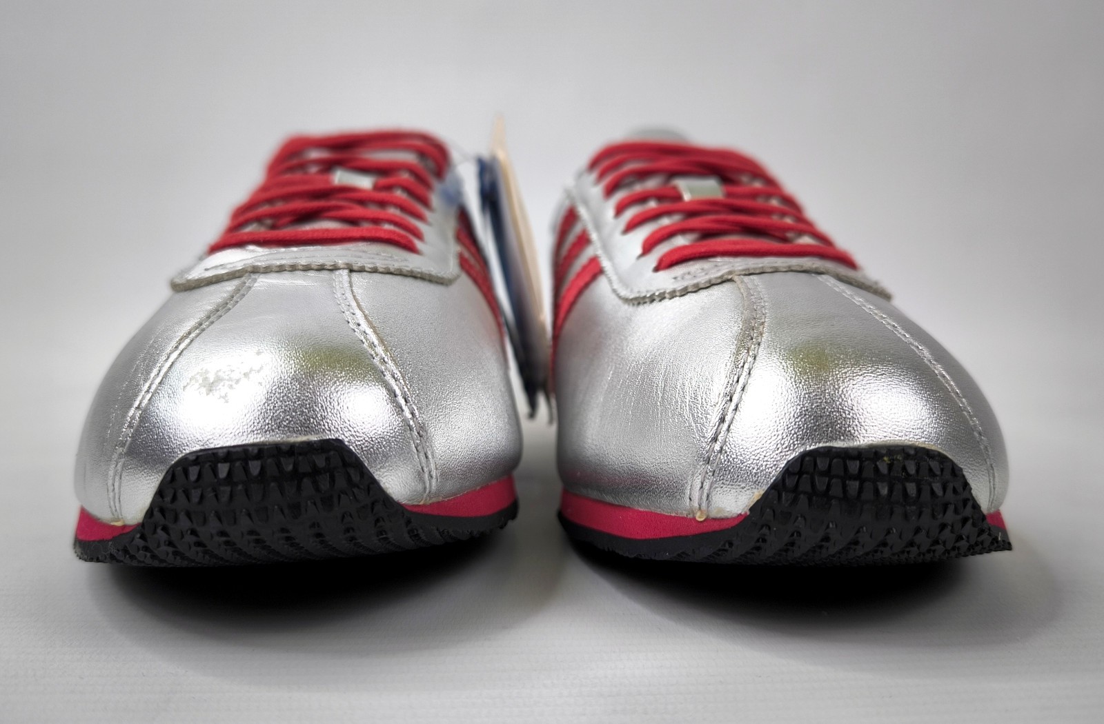 Der rechte Schuh hat vorn auf der Spitze lagerungsbedingt eine kleine Abscharbung.