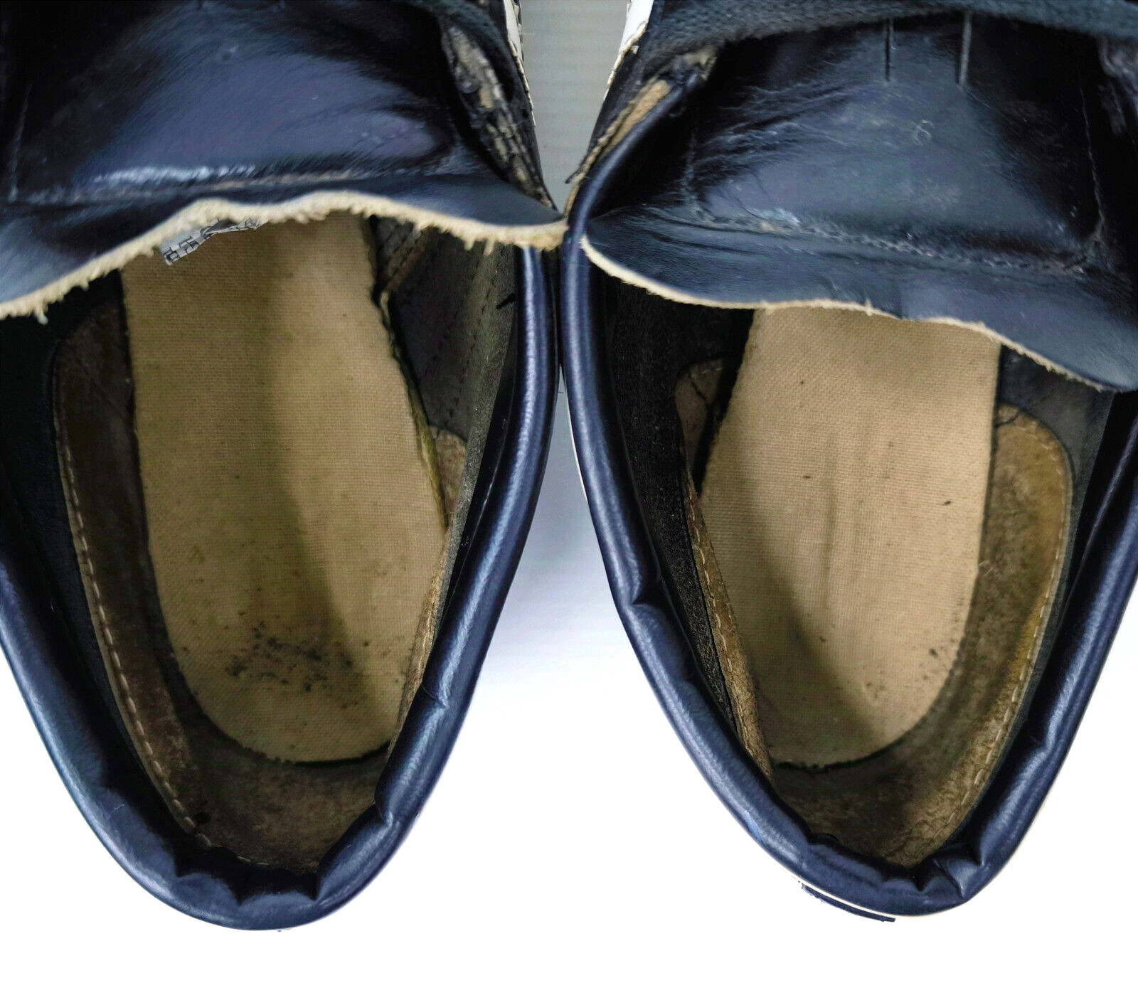 ________________________________________Marke: PumaModell: ToreroGröße: ca. Eur 41 / UK 7.5 / US 8Farbe: schwarz Zustand: getragen_______________________________________Beschreibung:Die Schuhe wurde getragen und befinden sich in einem sehr schönen Zustand.Leichte Tragespuren am Obermaterial, im Innenschuh sowie etwas stärker an den unteren Sohlen inkl. Stollen.Puma Modell zur WM / World Cup 1982.Made in West Germany.Im Schuh ist keine Größe zu finden. Im Vergleich mit anderen Puma Fussballschuhe ist die Größe eine UK 7 oder UK 7.5 (Eur 41).Der Länge der unteren Sohle beträgt ca. 27cm.Vitrinen- oder Sammlerschuh._______________________________________Obermaterial:100% Leder_______________________________________Achtung !Wir verkaufen diesen Schuh vornehmlich als Vitrinen- und / oder Sammlerschuh. Ein Tragen können wir durch das hohe Alter des Schuhs nicht garantieren und wissen auch nicht, wie sich die Materialien sichtbar und unsichtbar nach den Jahren verändert haben oder verändern werden.