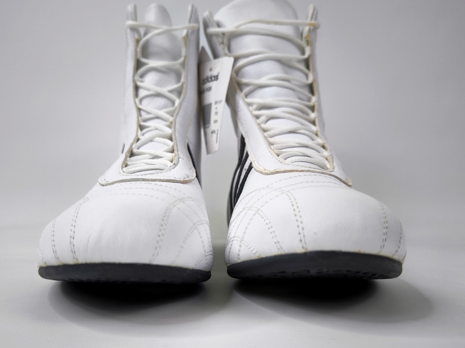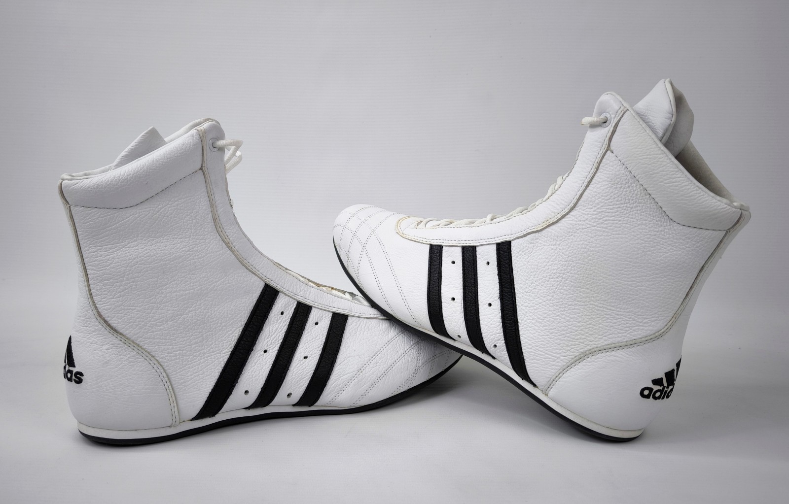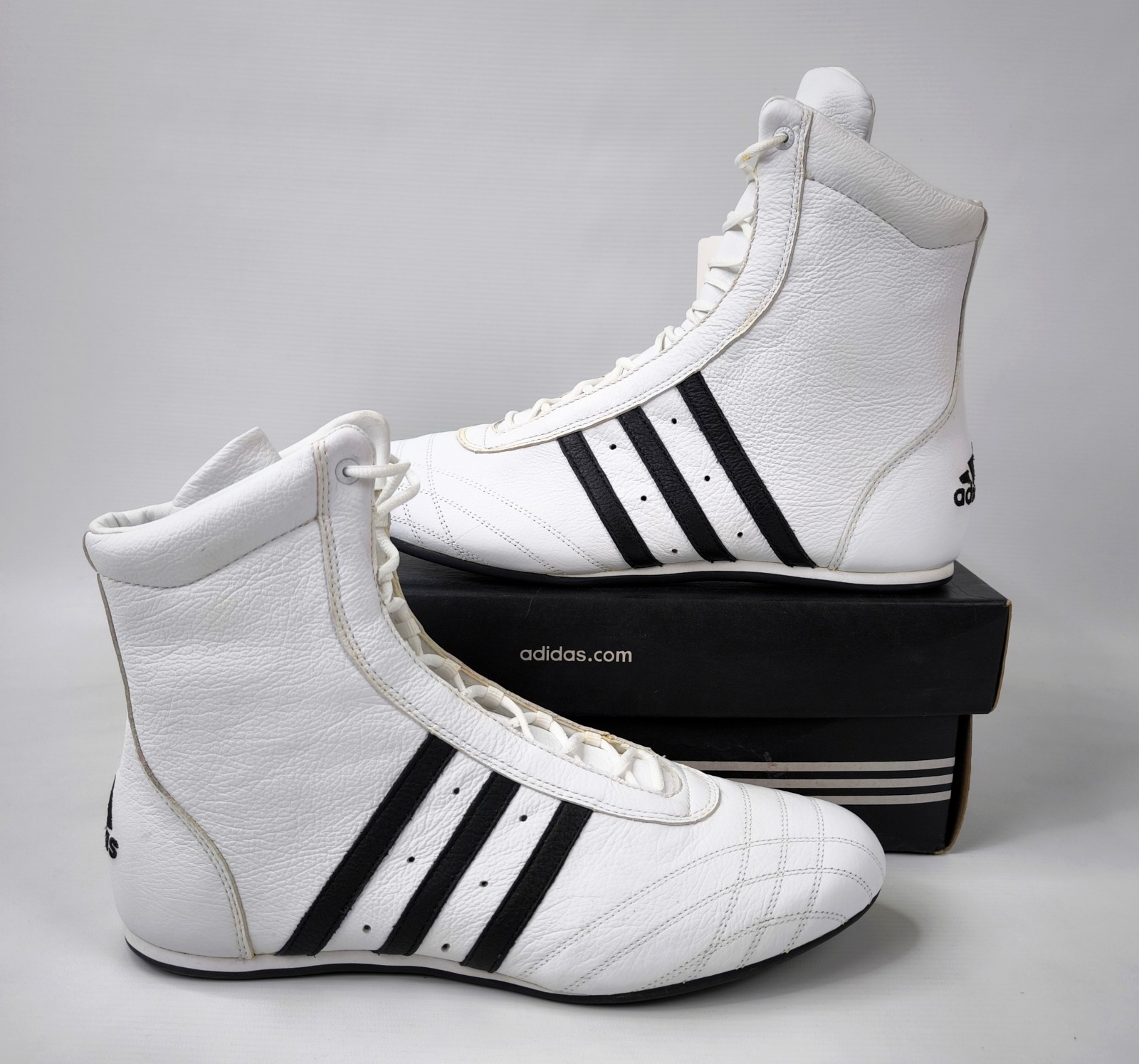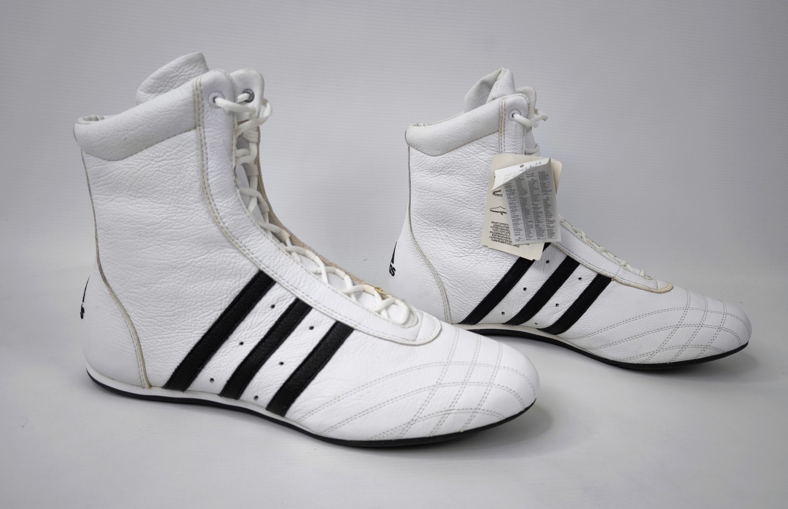 ________________________________________Marke: adidasModell: Tygun / 021439Größe: UK 8 - UK 10.5 Farbe: schwarz / silber Zustand: neu und ungetragen_______________________________________ Beschreibung:Die Schuhe sind neu und ungetragen im Karton.Ein adidas Boxschuh Modell aus dem Jahr 2003.Absolut ungetragen.
