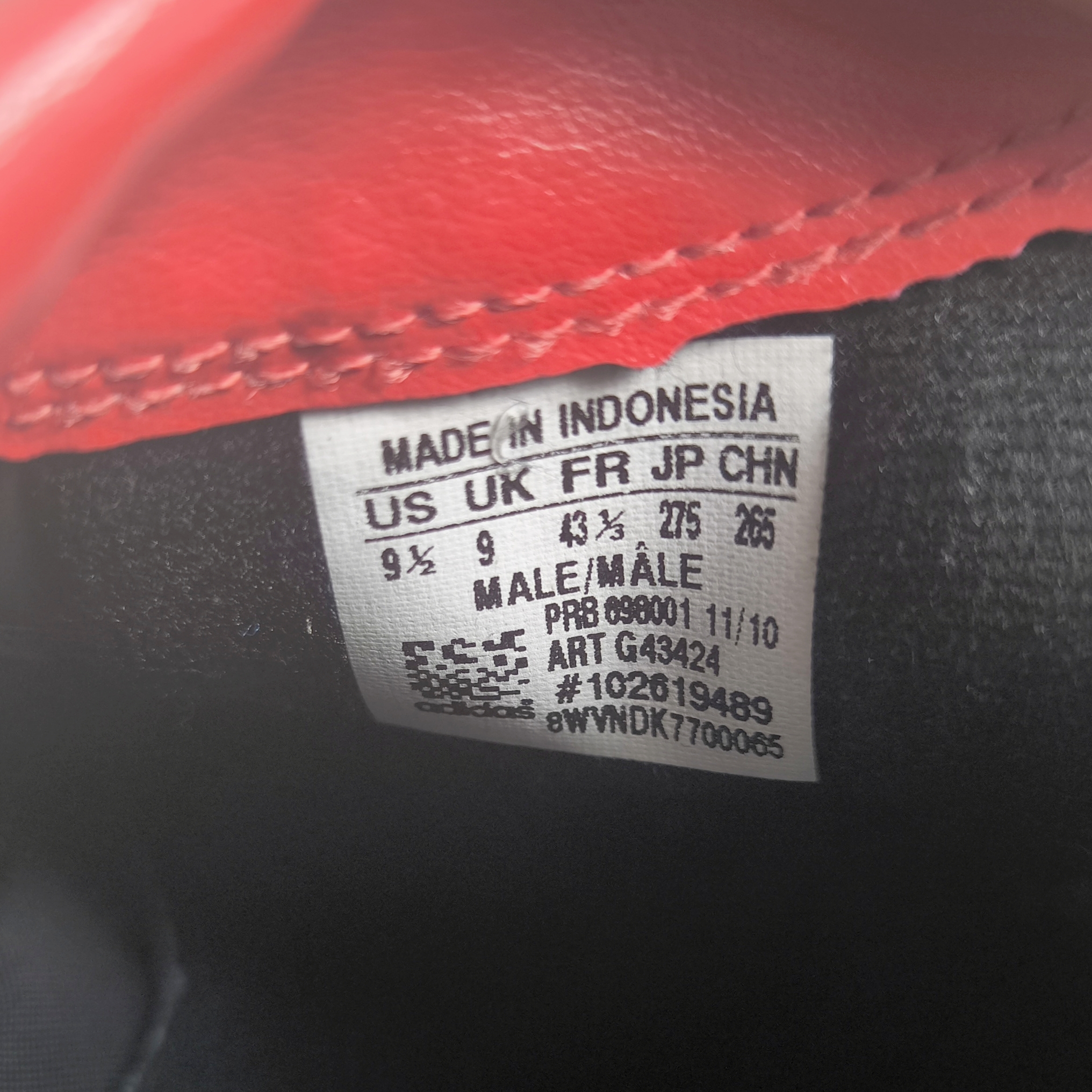 ________________________________________Marke: adidasModell: Predator Pulsado TRX HGModellnr.: 039867Größe: UK 11.5 / US 12 / Eur 46 2/3Farbe: schwarz / rot / weiß Zustand: neu______________________________________Beschreibung:Die Schuhe sind absolut neu und ungetragen mit Etikett.Ein adidas Predator Pulsado aus dem Jahr 2003.______________________________________Obermaterial:100% Leder