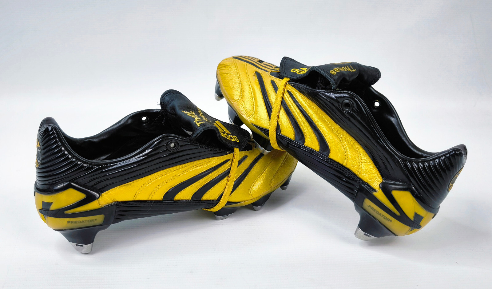 ________________________________________ Marke: adidasModell: Predator Pulse / personalisiert MTMGröße: Eur 44 / UK 9.5 / US 10Zustand: getragen / ________________________________________ Beschreibung:Made In Germany.Personalisiert und getragen vom spanischen Fussballspieler Victor Casadesus. In welchem Spiel die Schuhe genau getragen wurden können wir leider nicht sagen.Der Schuh wurde nicht gereinigt und so belassen wie er nach dem Spiel war.Die Schuhe haben Spielspuren und leichte Beschädigungen an den adidas 3 Streifen Kunstoffteilen an den Seiten, die durch das Alter, auch modellbedingt, leicht porös werden.Ein weiteres Brechen kann nicht ausgeschlossen werden.Der Gummi der Laschen ist gedehnt.Seltener adidas Predator Pulse als originale Spielerversion, die so nie im Handel erhältlich war und personalisiert für diesen Spieler. ________________________________________ Material:Obermaterial: 100% Leder