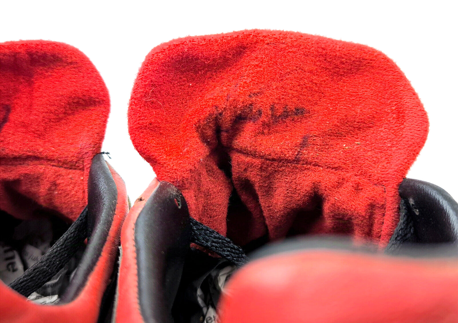 Die Schuhe haben starke Spielspuren und auch Beschädigungen vom Tragen.