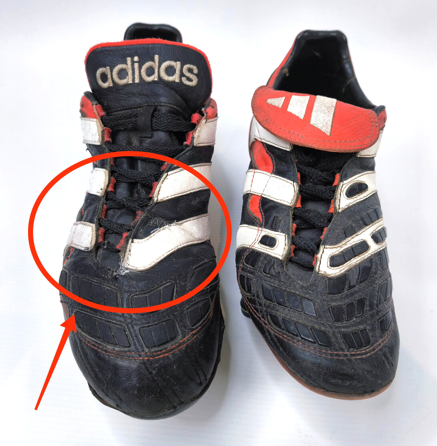 ________________________________________Marke: adidasModell: Predator Pulsado TRX FGModellnr.: 519669Größe: UK 9.5 / US 10 / Eur 44Farbe: schwarz / rot / weiß Zustand: neu______________________________________Beschreibung:Die Schuhe sind absolut neu und ungetragen (ohne Etikett).Ein adidas Predator Pulsado aus dem Jahr 2005.______________________________________Obermaterial:100% Leder