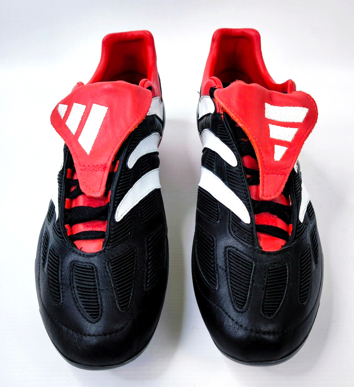 ________________________________________Marke: adidasModell: Predator Pulsado TRX FGModellnr.: 519669Größe: UK 9.5 / US 10 / Eur 44Farbe: schwarz / rot / weiß Zustand: neu______________________________________Beschreibung:Die Schuhe sind absolut neu und ungetragen (ohne Etikett).Ein adidas Predator Pulsado aus dem Jahr 2005.______________________________________Obermaterial:100% Leder