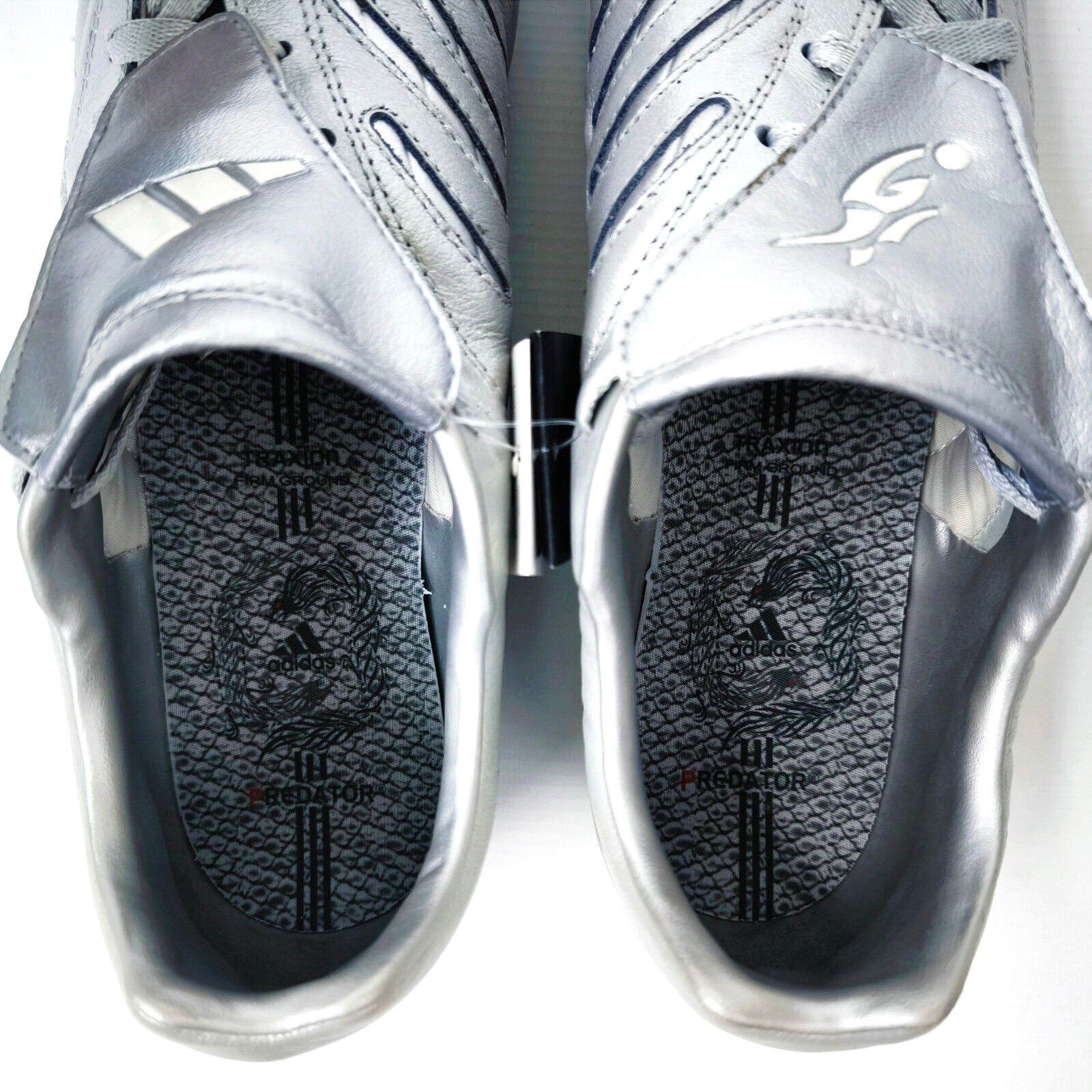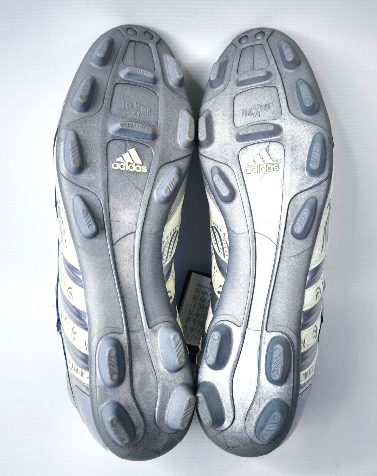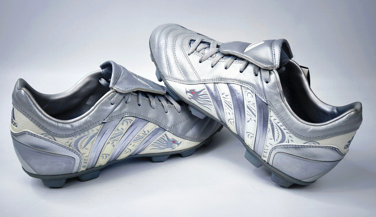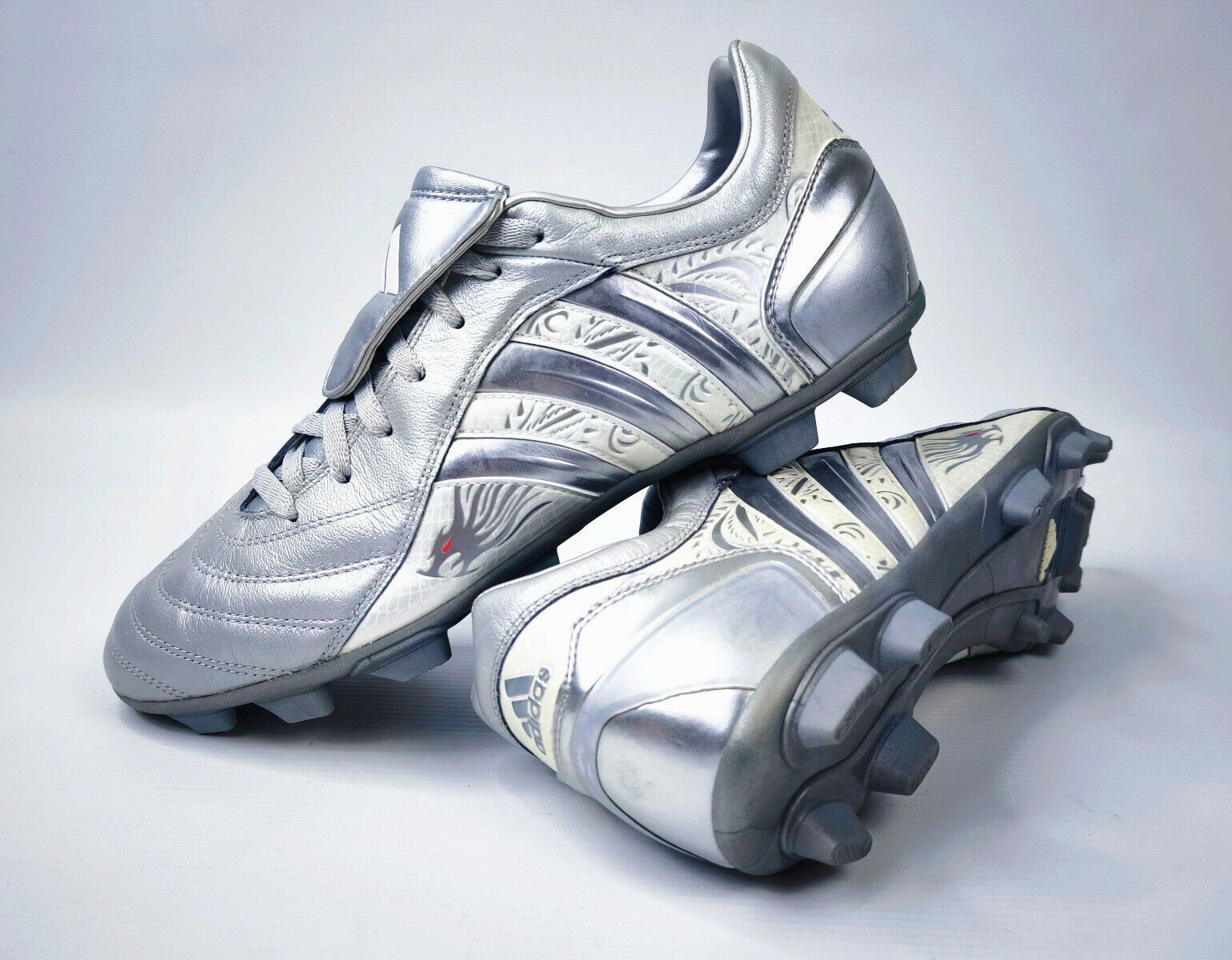 ________________________________________Marke: adidasModell: Pulsado TF / 553400Größe: UK 7 / US 7.5 / Eur 40 2/3Farbe: silber / beige Zustand: neu________________________________________Beschreibung:Die Schuhe sind ungetragen.Durch das Alter und die lange Lagerung sind die Laschen vom Material her brüchig geworden und blättern leicht ab.Ein Predator Pulsado TF aus dem Jahr 2004.Aus der Predator Serie von David Beckham.Ungetragen mit leichten Lagerschäden.________________________________________Obermaterial:100% Leder / SyntheticSohle:100% Gummi