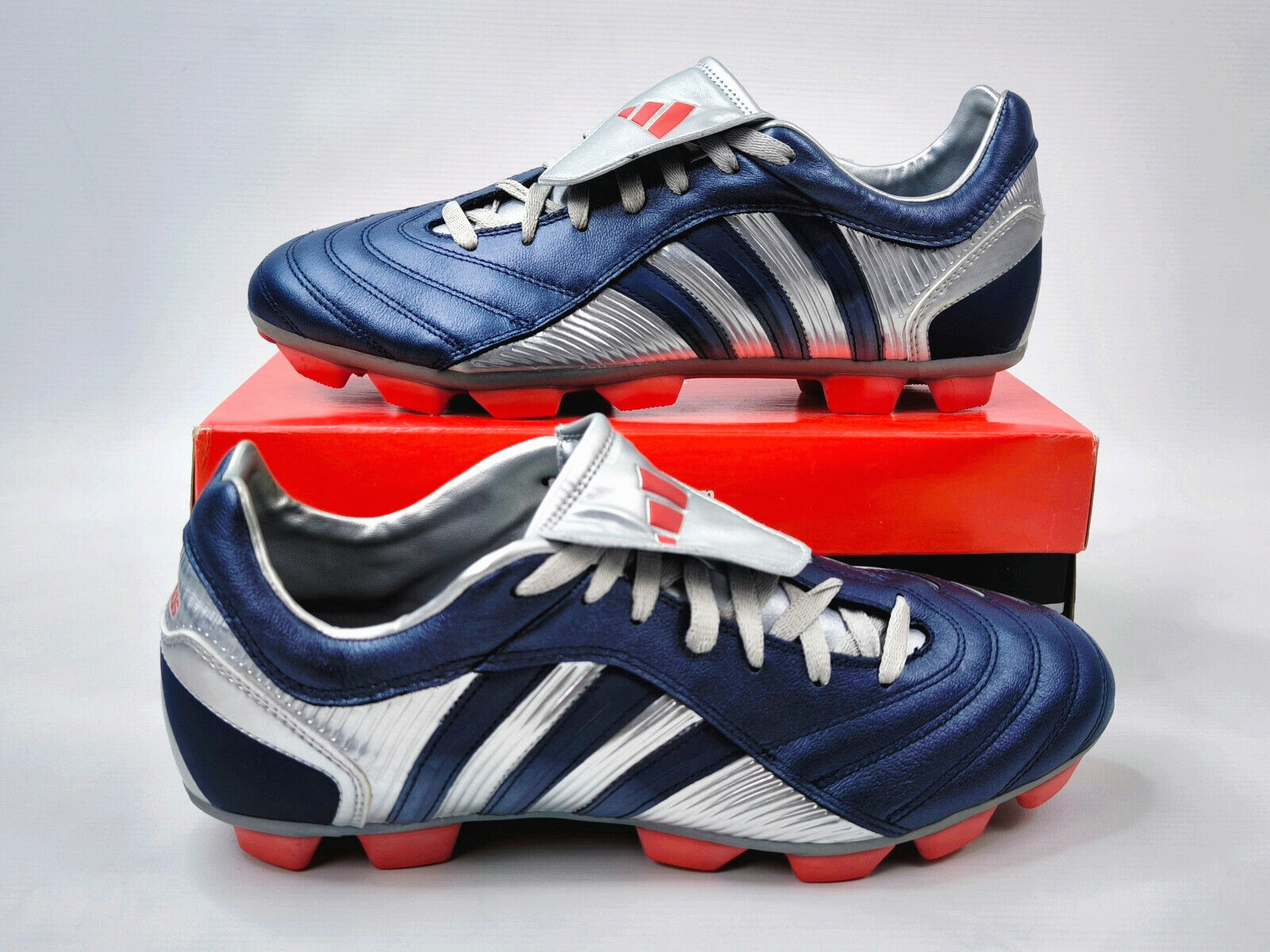 ________________________________________Marke: adidasModell: Predator Pulsado TRX FGModellnr.: 519669Größe: UK 9.5 / US 10 / Eur 44Farbe: schwarz / rot / weiß Zustand: neu______________________________________Beschreibung:Die Schuhe sind absolut neu und ungetragen (ohne Etikett).Ein adidas Predator Pulsado aus dem Jahr 2005.______________________________________Obermaterial:100% Leder