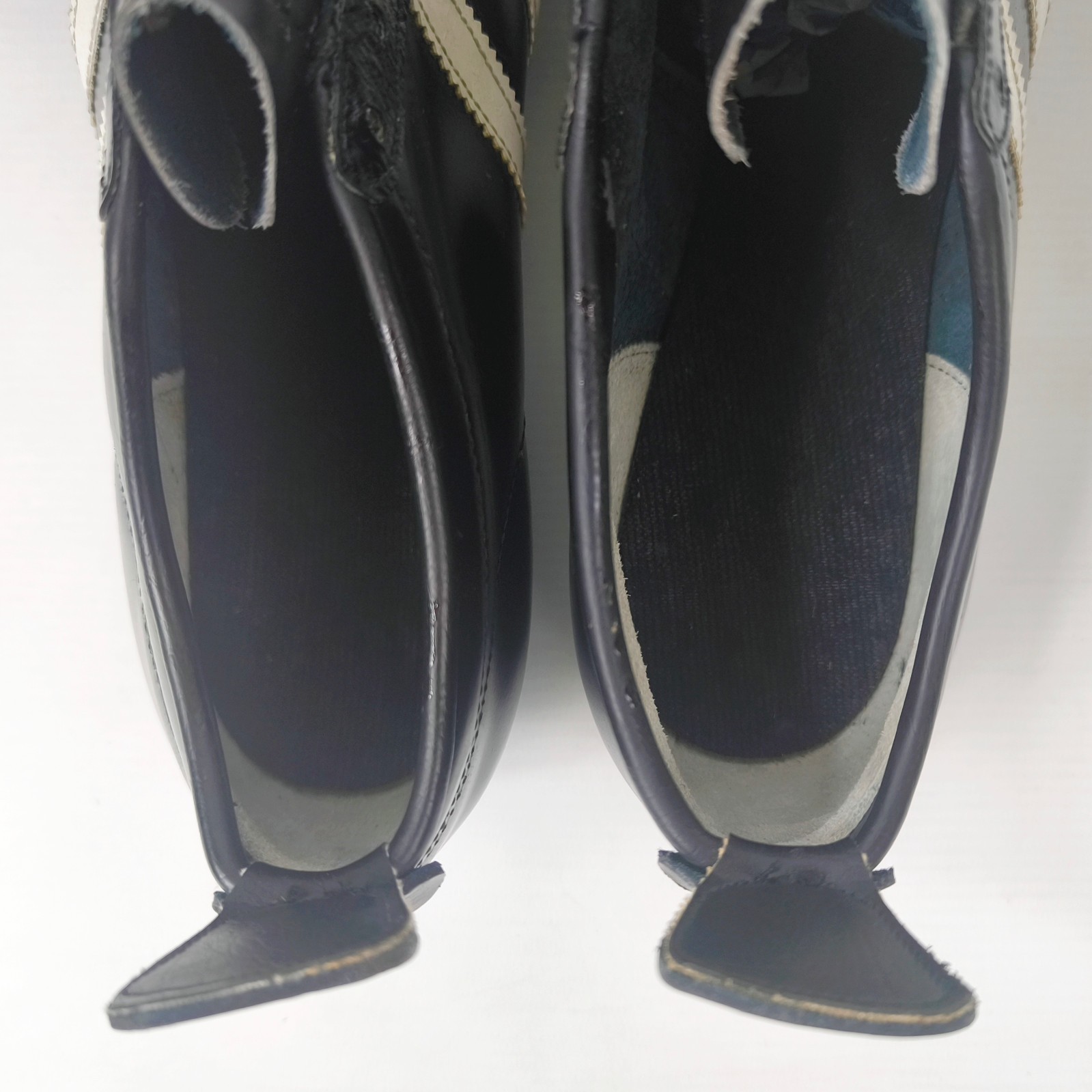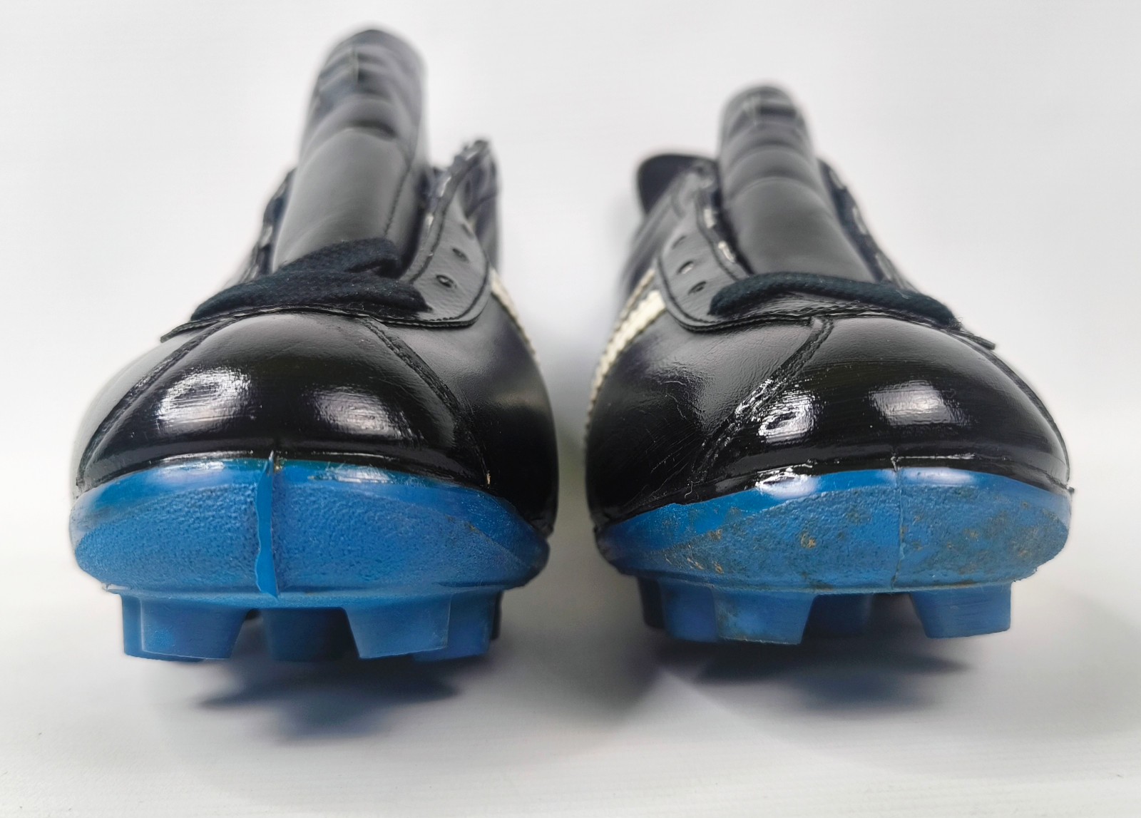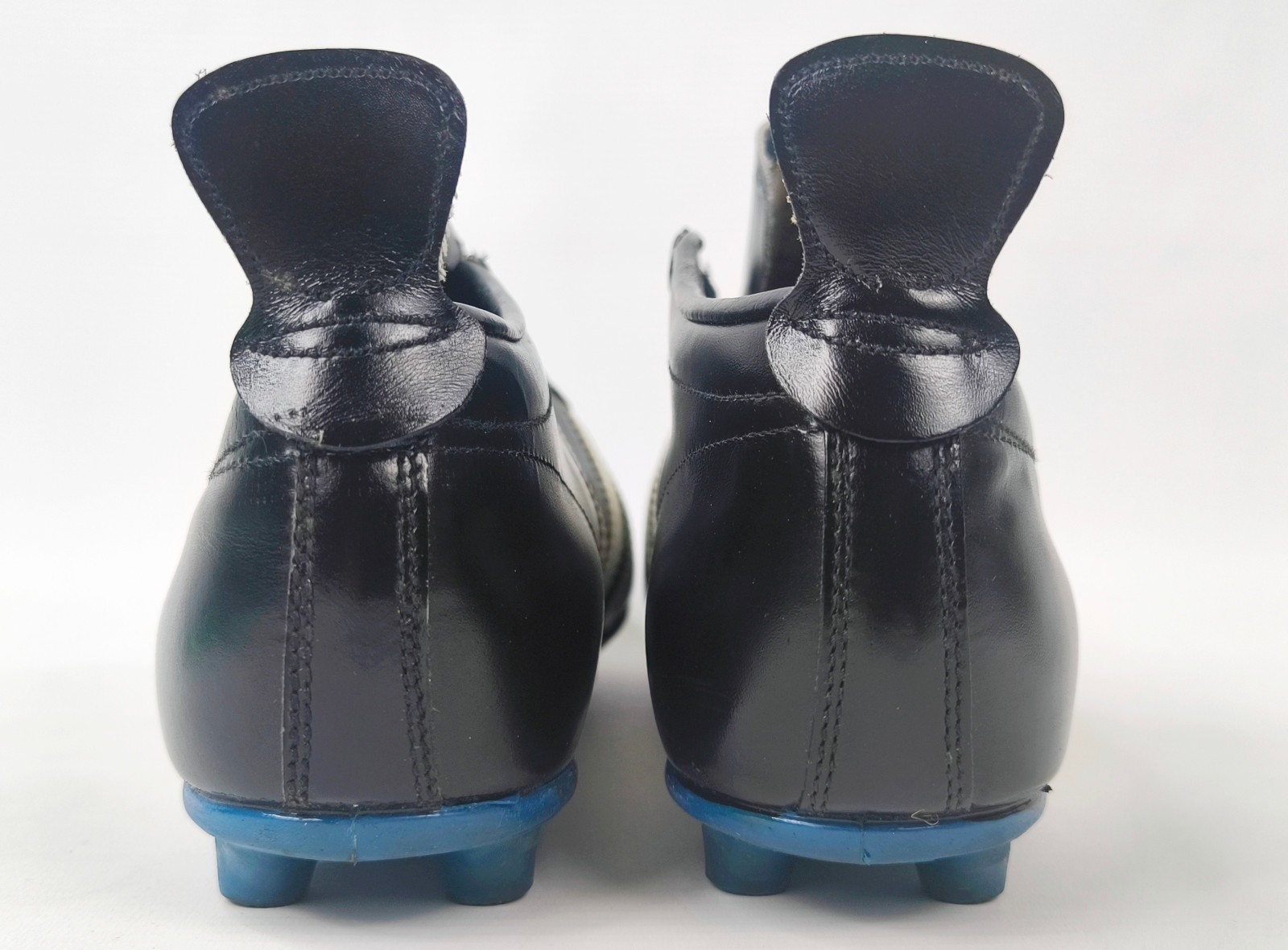 ________________________________________Marke: PonyModell: Pelé 10Modell: ca. UK 10 / US 10.5 / EUR 45Farbe: schwarz Zustand: sehr gut______________________________________Beschreibung:Die Schuhe befinden sich in einem sehr guten Zustand.Es sind nur leichte Tragespuren am Obermaterial, im Innenbereich und etwas stärker an den unteren Laufsohlen zu erkennen.Pelé selbst trug Pony Fussballschuhe ausschließlich in seiner Zeit bei den New York Cosmos in den USA, wo er Ende der 1970er Jahre spielte und auch dort seine Karriere beendete.Die Schuhe stammen auch aus den späten 1970er Jahren.Das vorletzte Foto zeigt eine Werbung der Firma Pony mit diesem Schuh.Diese Werbung war die letzte Seite eines französischen Fussball Magazin vom Februar 1978.Innen beider Schuhe ist ein Stempel mit "Made in RDA".RDA war seinerzeit die Abkürzung für Ost-Deutschland.Es ist keine Größe im Schuh zu finden.Die Länge der Außensohlen beträgt ca. 29cm.Im Vergleich mit anderen Fussballschuhen von uns aus den 1970er Jahren, ist die Größe etwa eine UK 10 - UK 10.5.Ein toller und seltener, alter Fussballschuh der Firma Pony und eine Homage an King Pelé.______________________________________Obermaterial:100% Leder