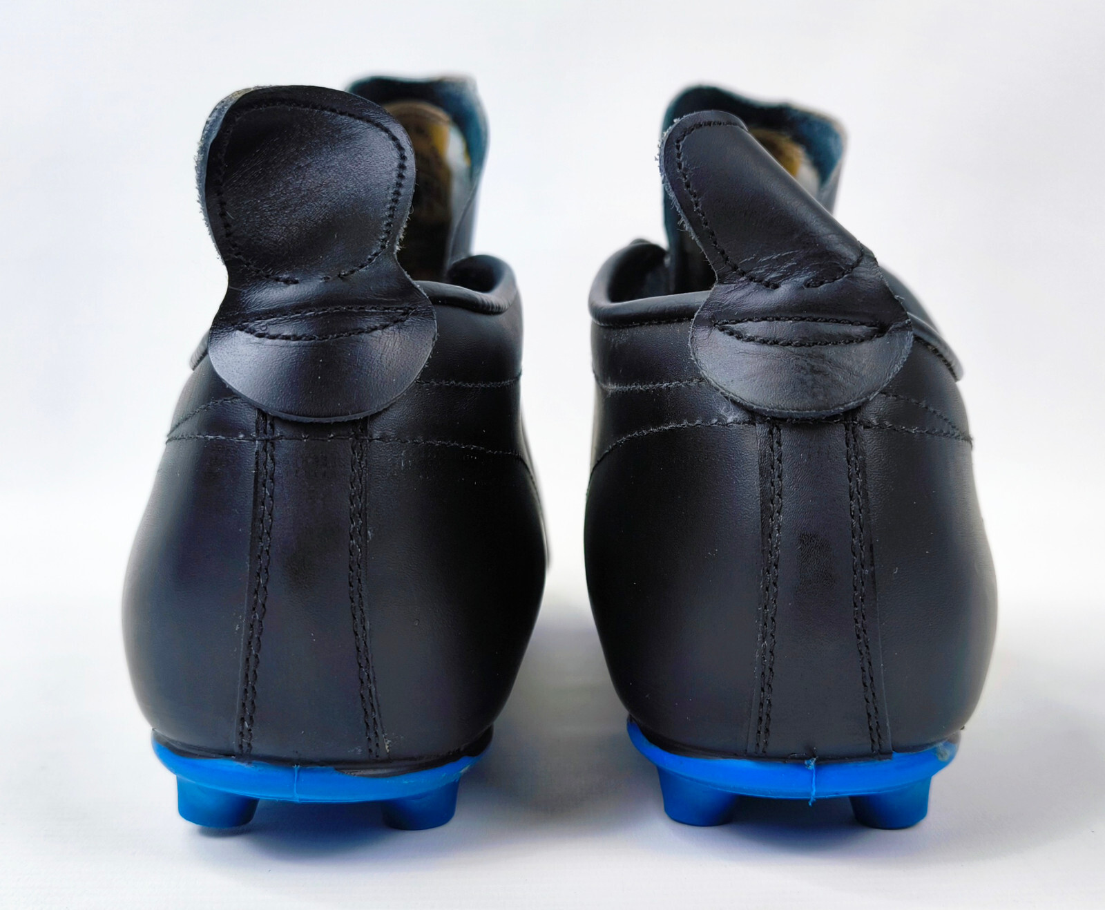 ________________________________________Marke: PonyModell: Pelé 10Modell: UK 7 / US 7.5 / EUR 41Farbe: schwarz Zustand: neu______________________________________Beschreibung:Die Schuhe sind neu und ungetragen im Karton.Ganz ganz leichte Lagerspuren / Produktionsspuren am Obermaterial.Pelé selbst trug Pony Fussballschuhe ausschließlich in seiner Zeit bei den New York Cosmos in den USA, wo er Ende der 1970er Jahre spielte und auch dort seine Karriere beendete.Die Schuhe stammen auch aus den späten 1970er Jahren.Das vorletzte Foto zeigt eine Werbung der Firma Pony mit diesem Schuh.Diese Werbung war die letzte Seite eines französischen Fussball Magazin vom Februar 1978.Innen beider Schuhe ist ein Stempel mit "Made in RDA".RDA war seinerzeit die Abkürzung für Ost-Deutschland.Ein toller und sehr seltener, alter Fussballschuh der Firma Pony und eine Homage an King Pelé.______________________________________Material: 100% Leder