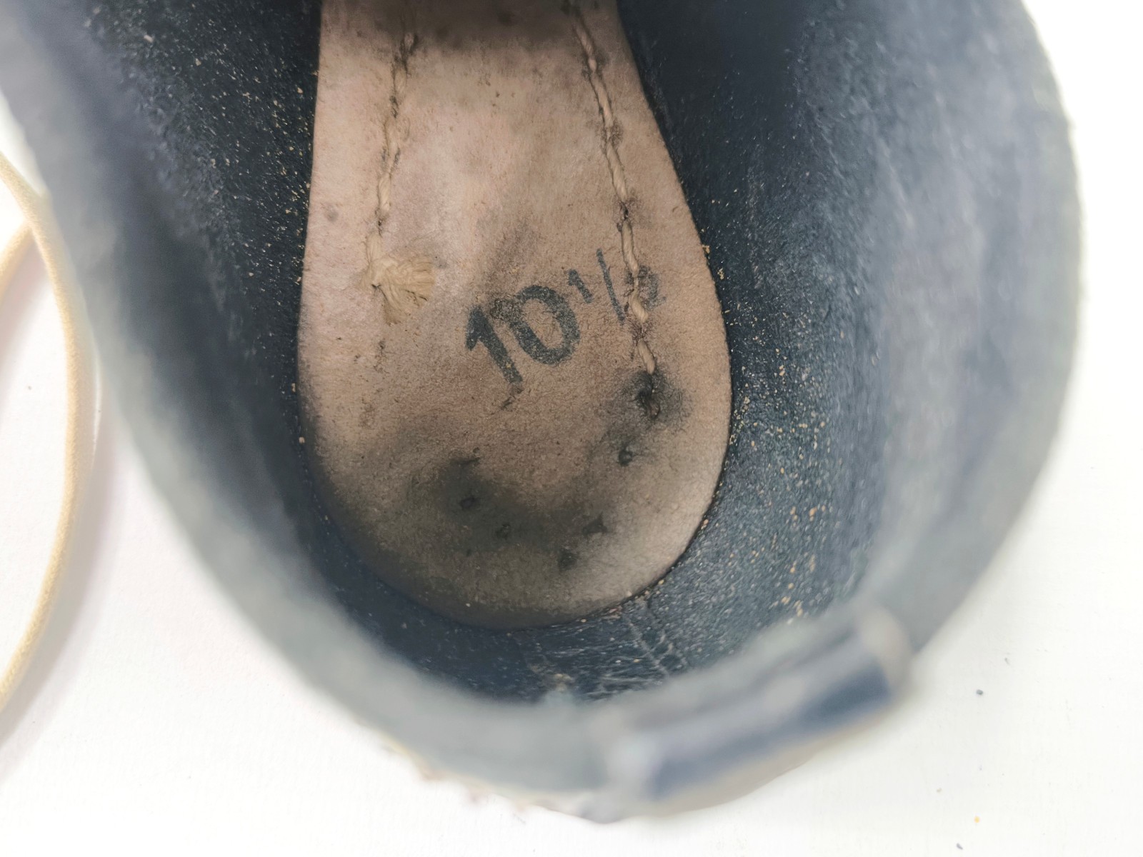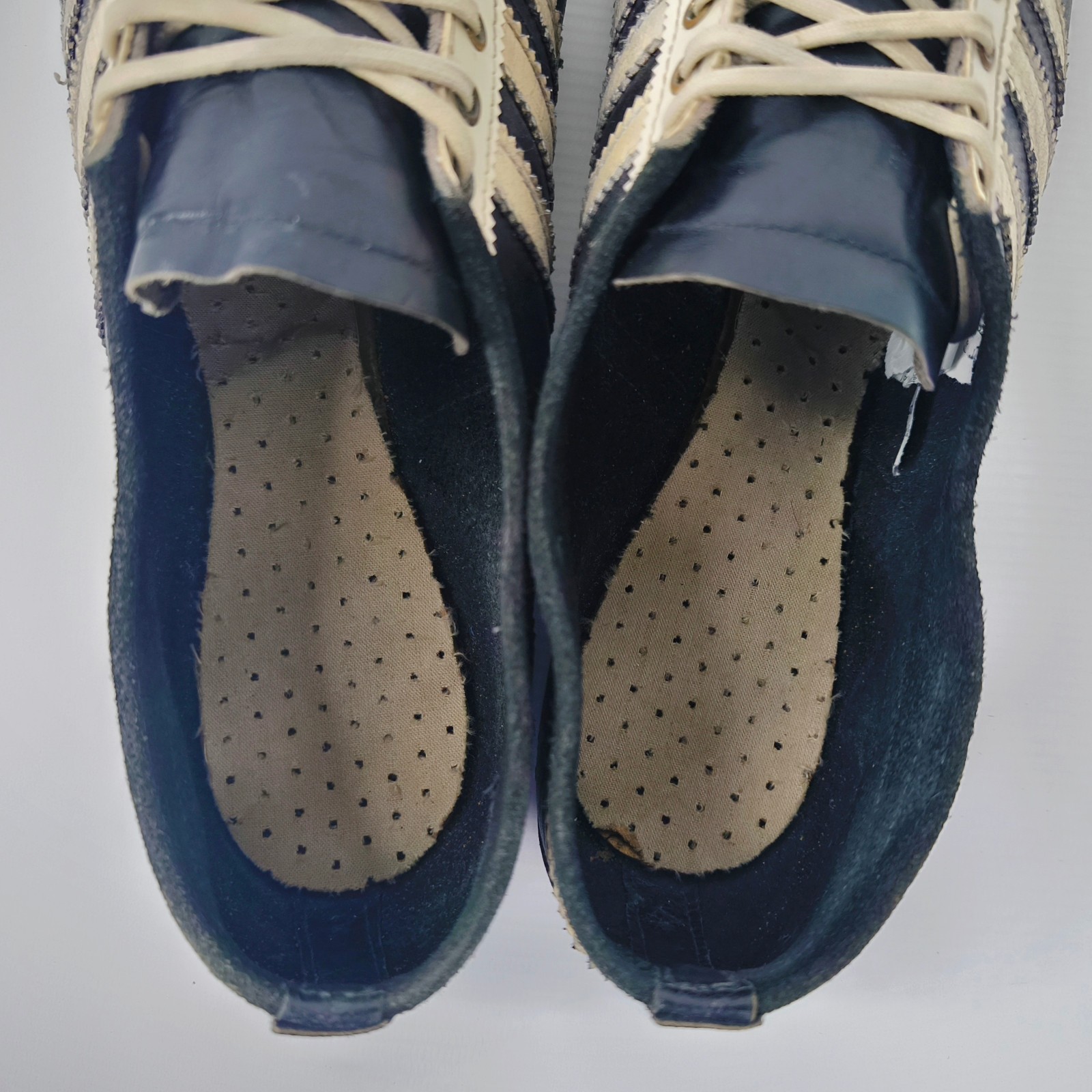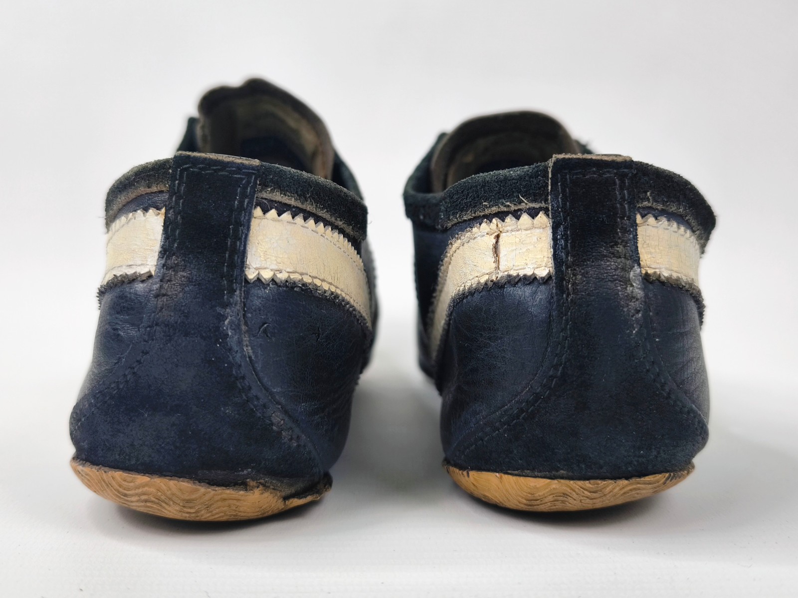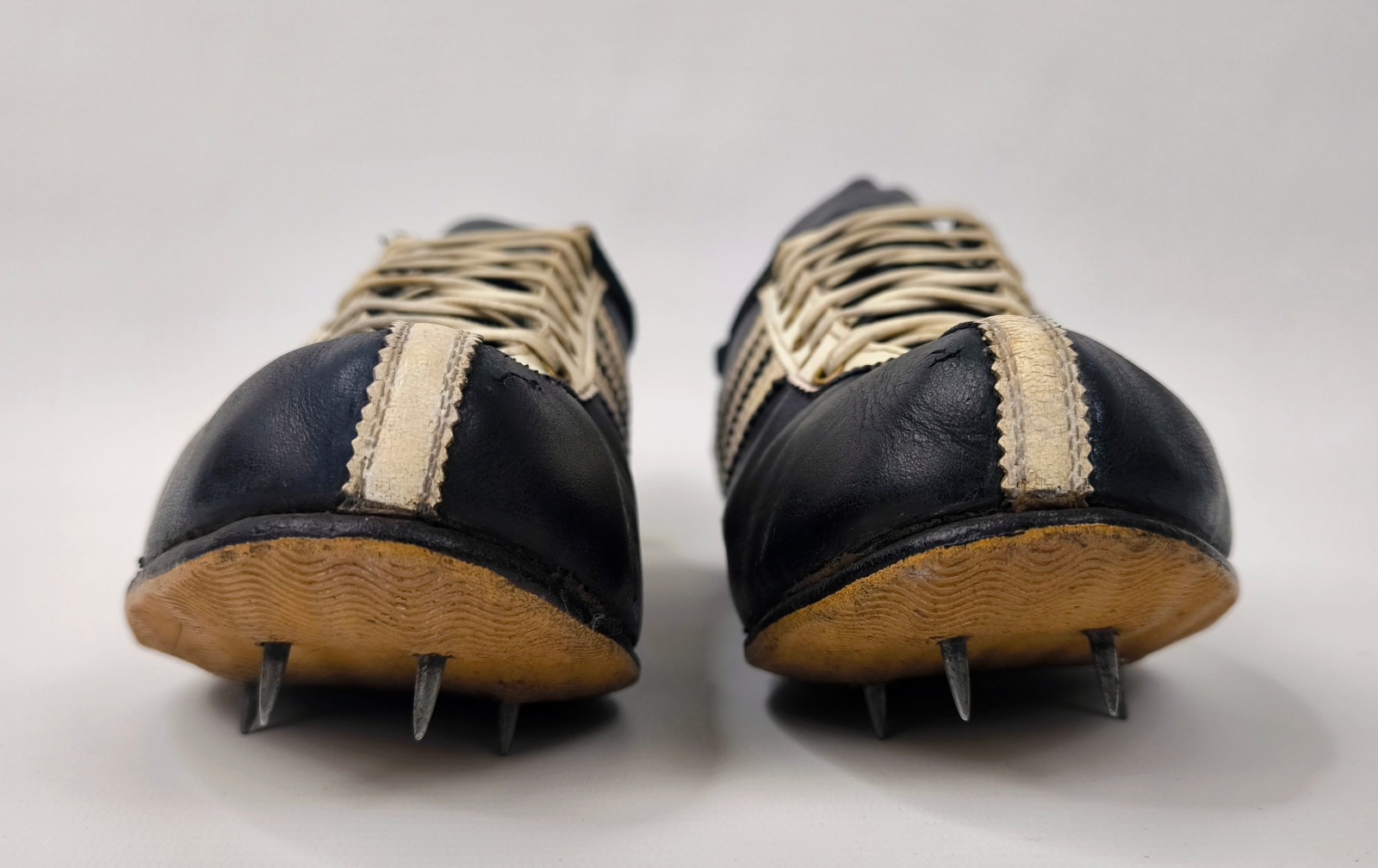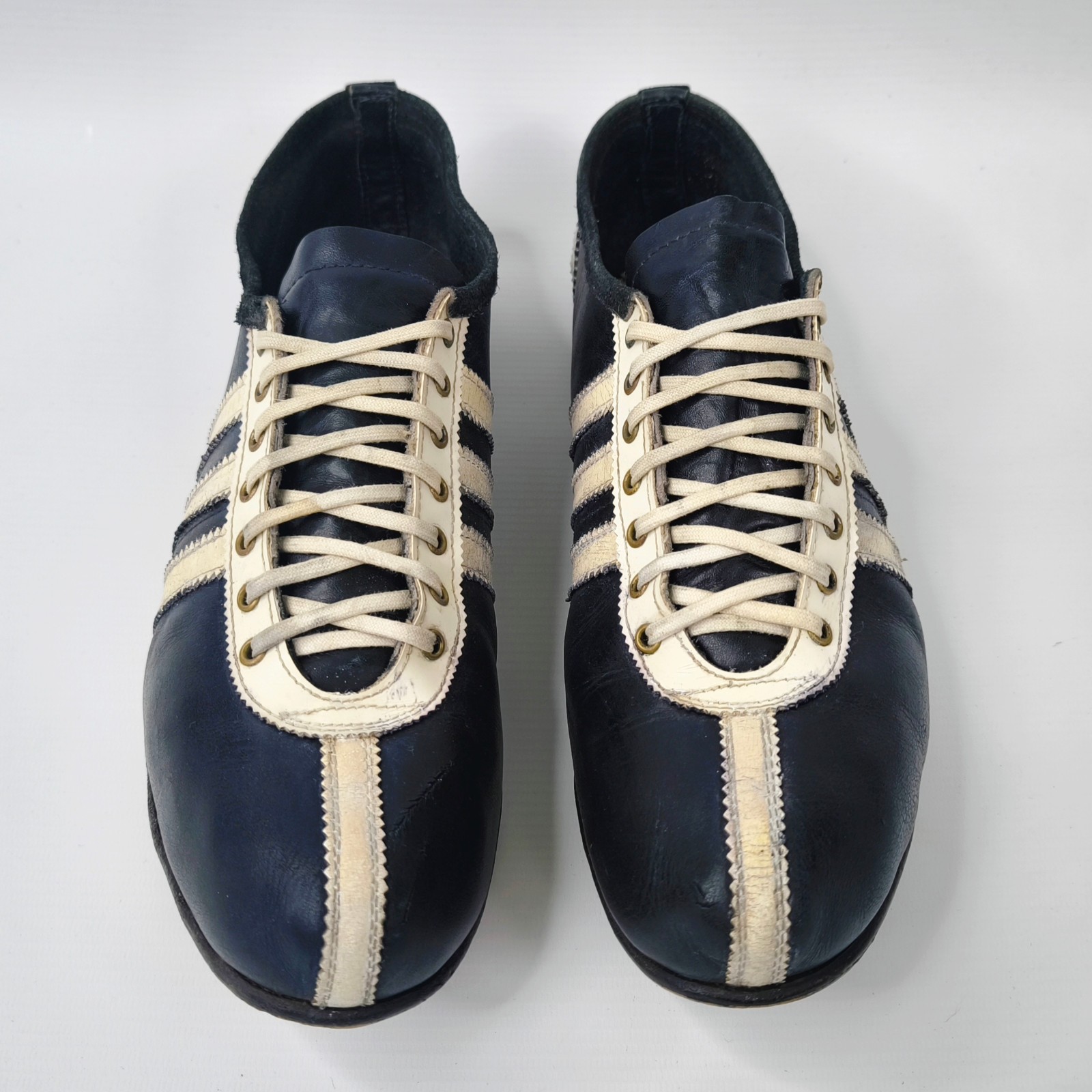Beide adidas Label-Einnäher der 1950er Jahre sind in den inneren Laschen vorhanden (siehe Foto).Ein adidas Spike Schuh original aus den 1950er Jahren.