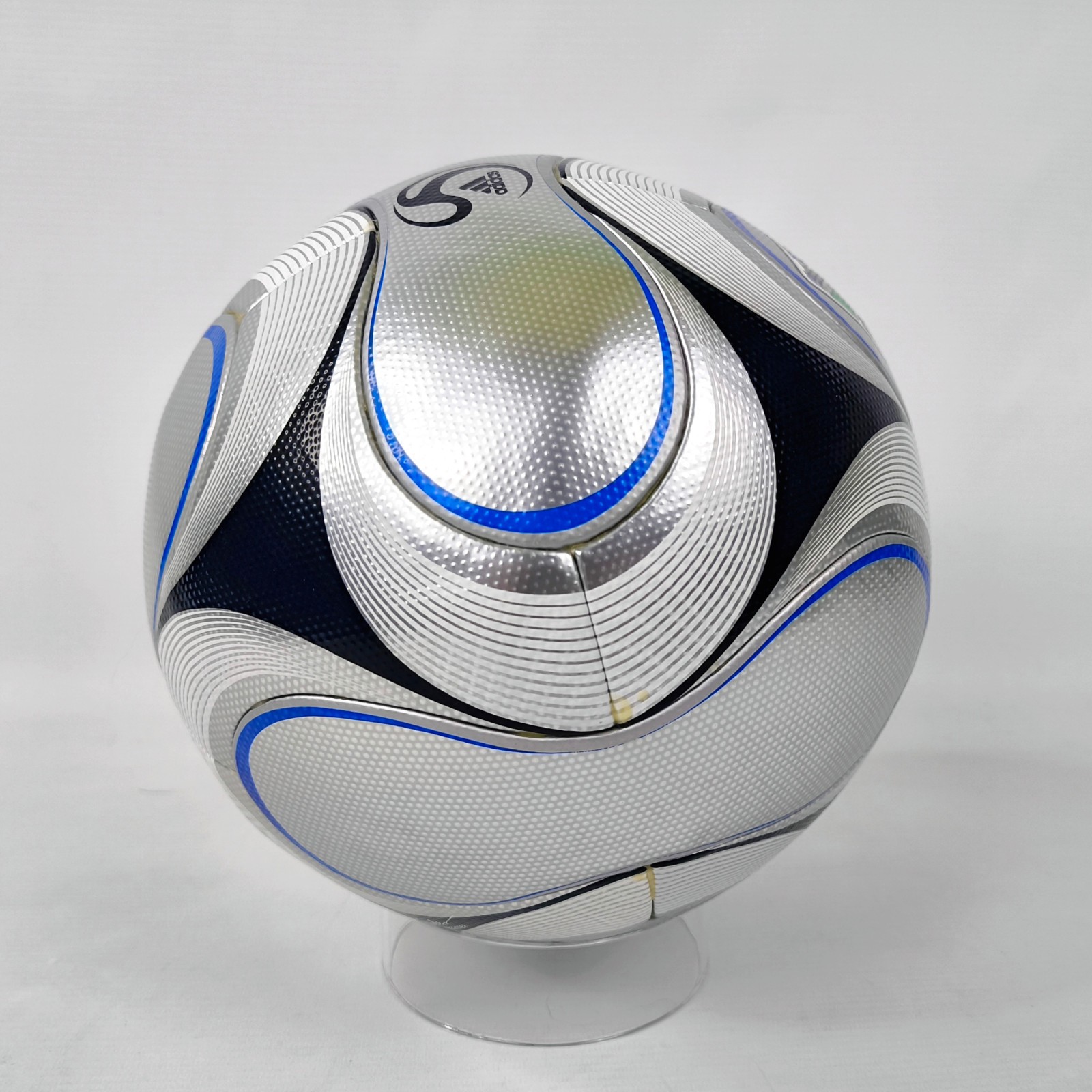 ________________________________________Marke: adidasModell: PeliasTurnier: Confederations Cup 2005Größe: 5Zustand: unbespielt________________________________________Beschreibung:adidas Fussball Pelias.Official Match Ball / Offizieller Spielball des Confederations Cup 2005.Hält die Luft perfekt !An einem Paneel (Foto 3) ist eine Druckstelle und an einem eine leichte Farbveränderung (Foto 9).Der Ball ist aber absolut unbespielt.Kam seinerzeit direkt vom FCB München.