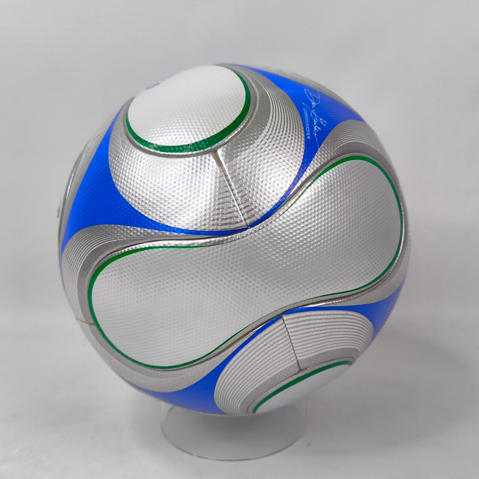 ________________________________________Marke: adidasModell: PeliasTurnier: Confederations Cup 2005Größe: 5Zustand: unbespielt ________________________________________Beschreibung:adidas Fussball Pelias.Official Match Ball / Offizieller Spielball des Confederations Cup 2005.Der Ball wurde beim Halbfinale des Confederations Cup 2005 in Nürnberg zwischen Deutschland und Brasilien am 25.06.2005 original unterschrieben von:Frank Beckenbauer, Jürgen Klopp, dem ehemaligen FIFA Schiedsrichter Urs Meier und dem deutschen Fernsehmoderator Johannes B. Kerner.Der Ball hat durch die lange Lagerung leichte Faltenbildung an den Paneelen.Ist neu und unbespielt !Hält die Luft perfekt !Toller Fussball des Confed Cup 2005, signiert von mindestens einer Legende des deutschen Fußballs !