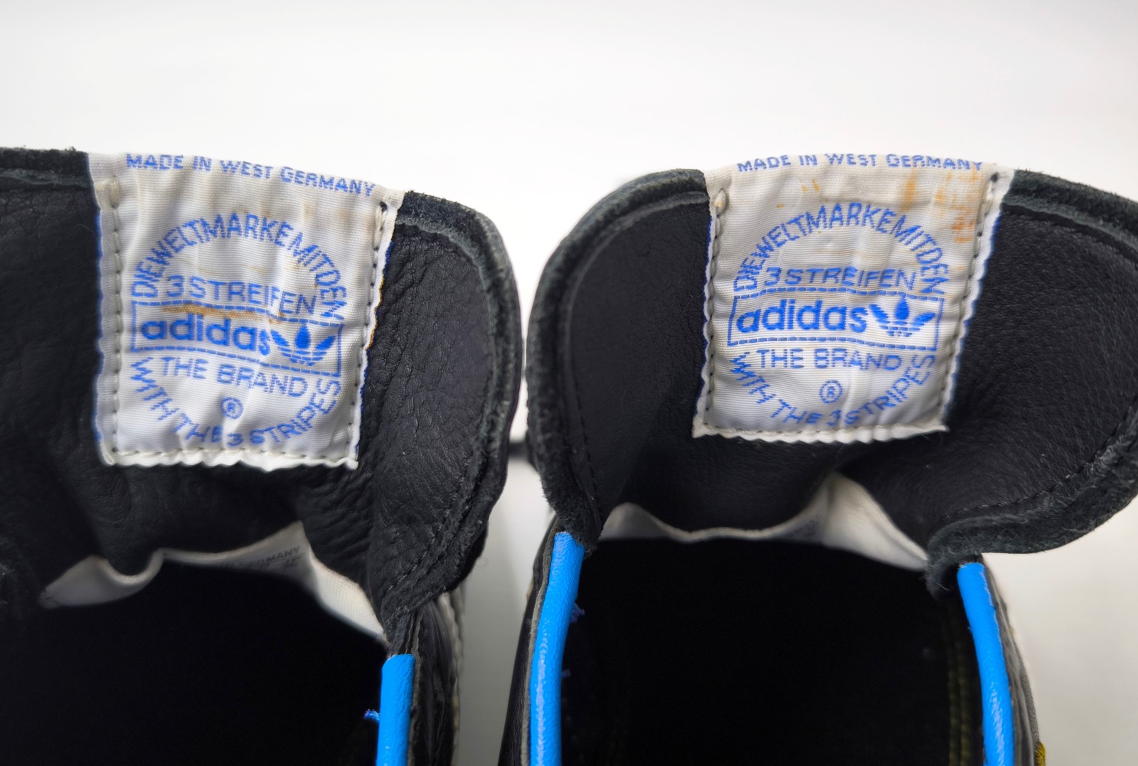 ________________________________________Marke: adidasModell: OberligaGröße: ca. UK 10 / US 10.5 / Eur 45Farbe: schwarz / weiß Zustand: getragen______________________________________Beschreibung:Die Schuhe wurden getragen und befinden sich in einem absolut guten Zustand.Altes Modell hergestellt um das Jahr 1960.Modellschriftzug "Oberliga" am linken Shuh noch leicht zu erkennen.Keine Größenangabe am Schuh vorhanden.Im Vergleich mit anderen Fussballschuhen von uns ist es etwa eine Größe 45.Sohlenlänge außen ca. 29,5cm.Nur noch sehr selten zu findendes Modell.______________________________________Material:100% Leder