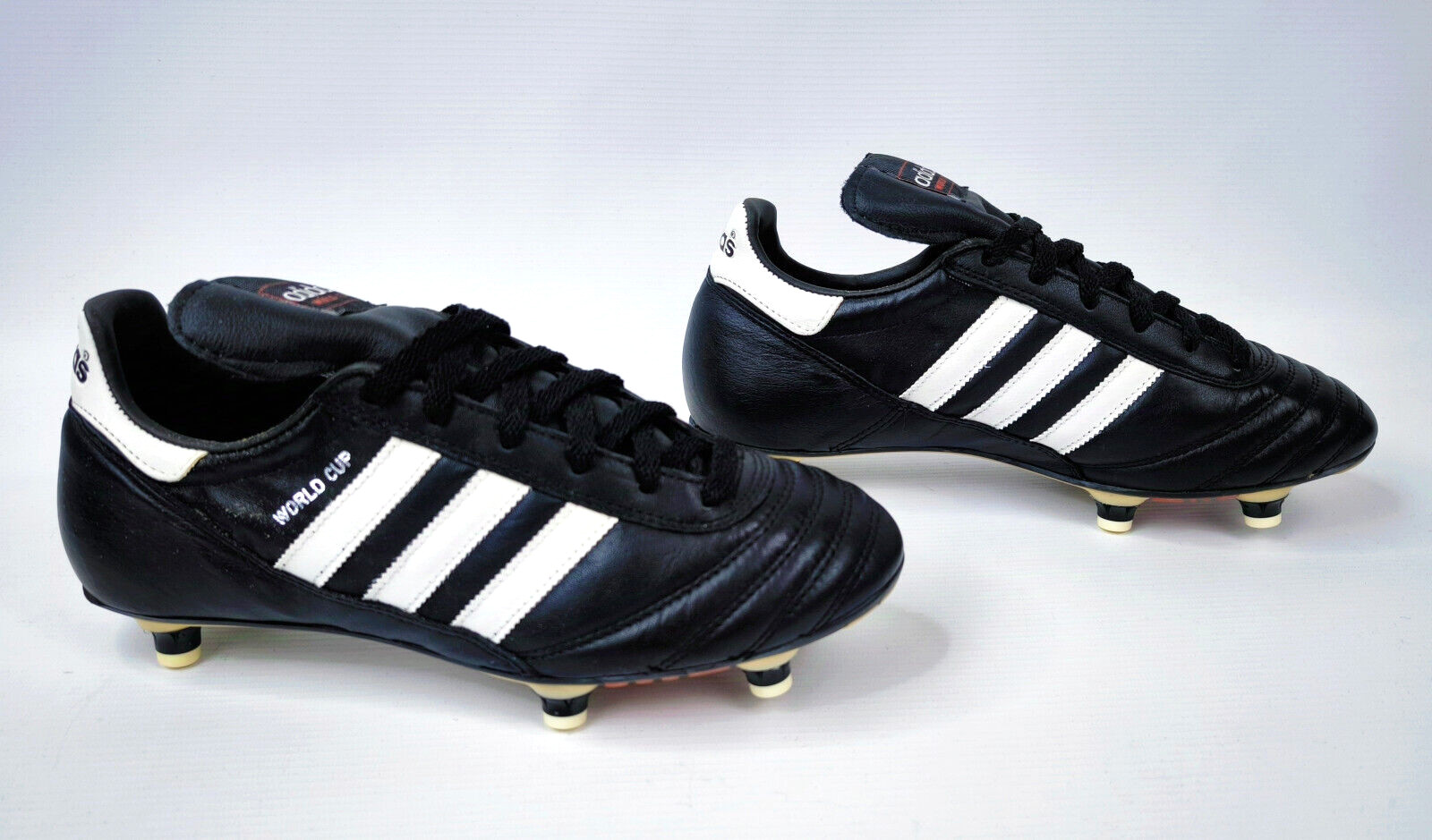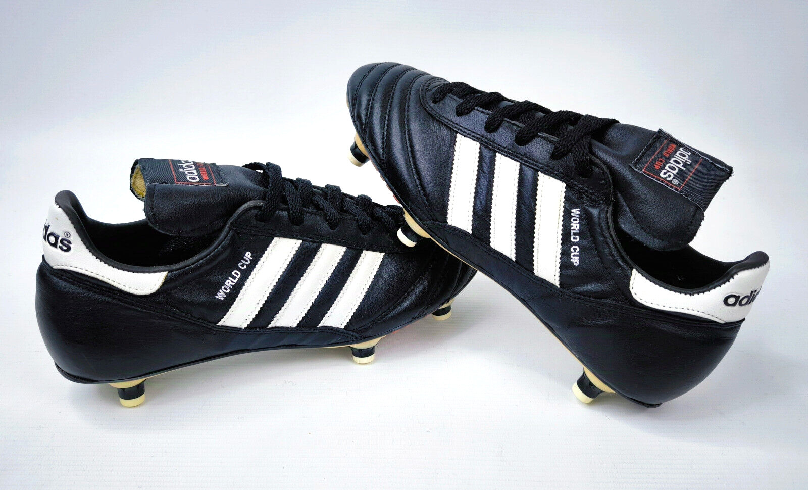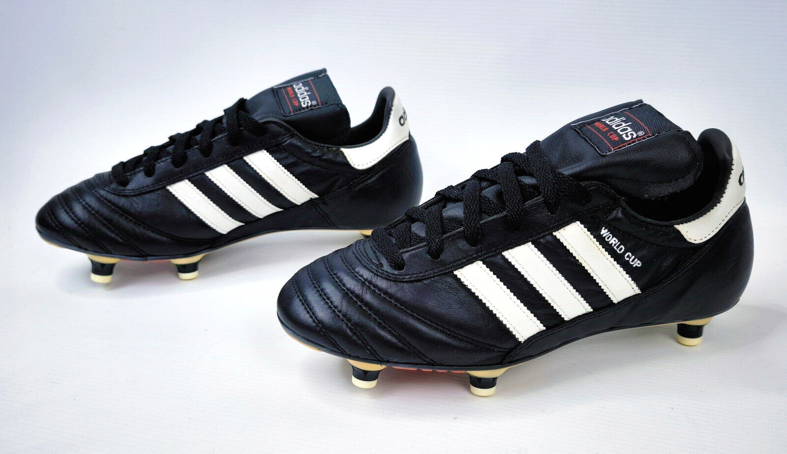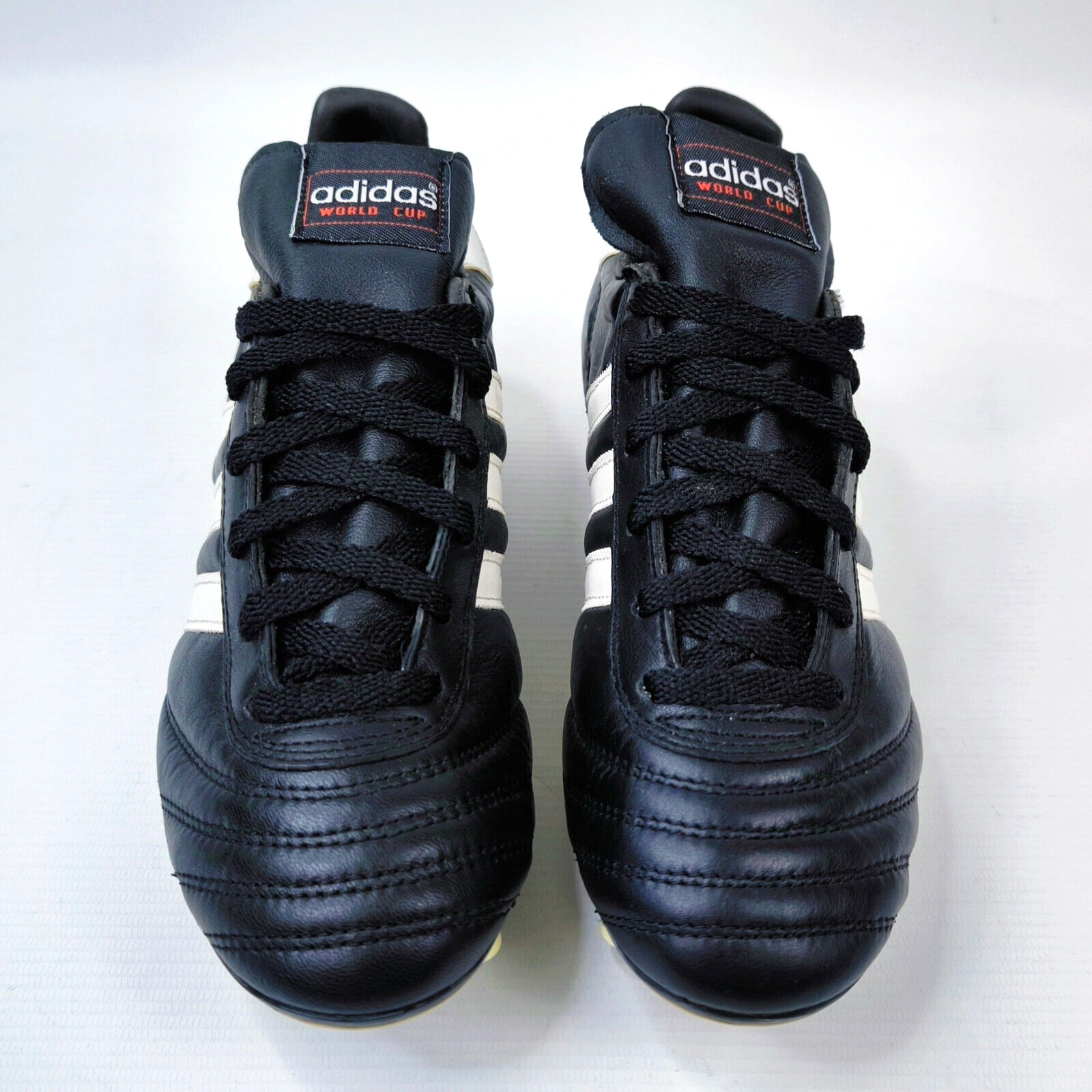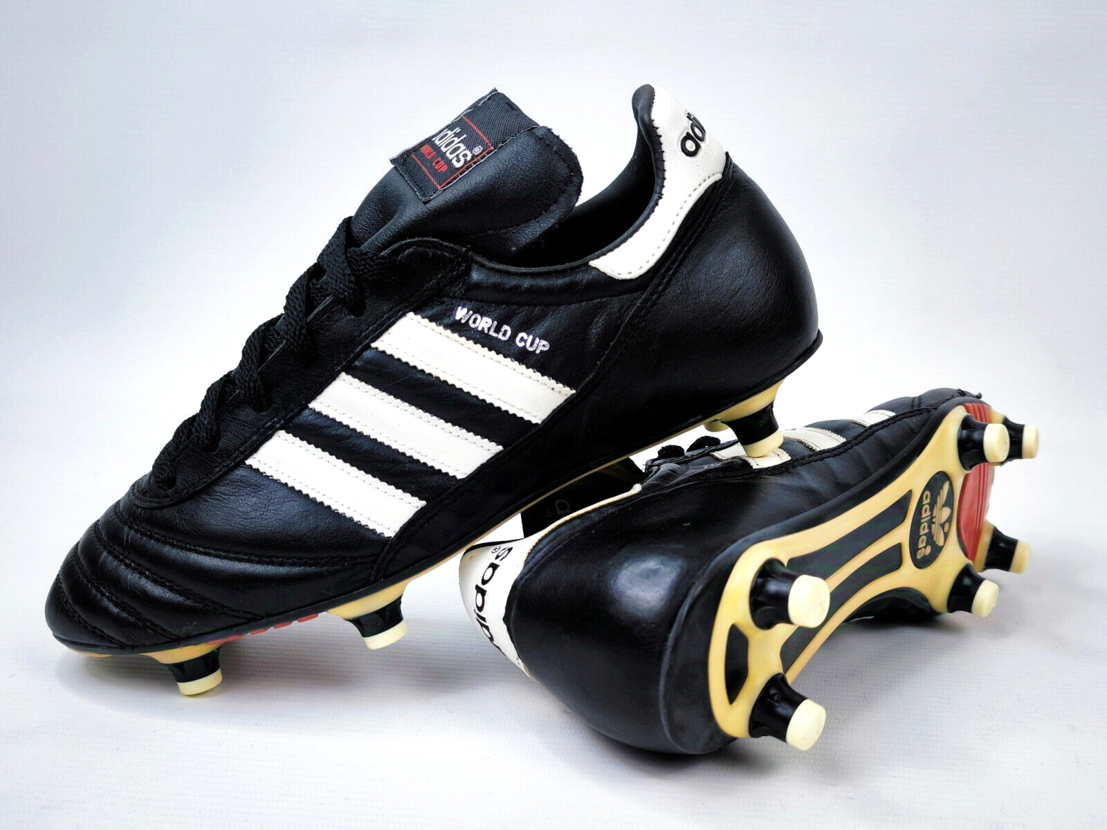 ________________________________________Marke: adidasModell: World Cup / 11040Größe: Eur 43 1/3 / UK 9 / US 9.5Farbe: schwarz / weiß Zustand: neu________________________________________Beschreibung:Die Schuhe sind neu und ungetragen.Ein adidas World Cup aus dem Jahr 1998.Absolut neu und ungetragen.________________________________________Material:100% Leder