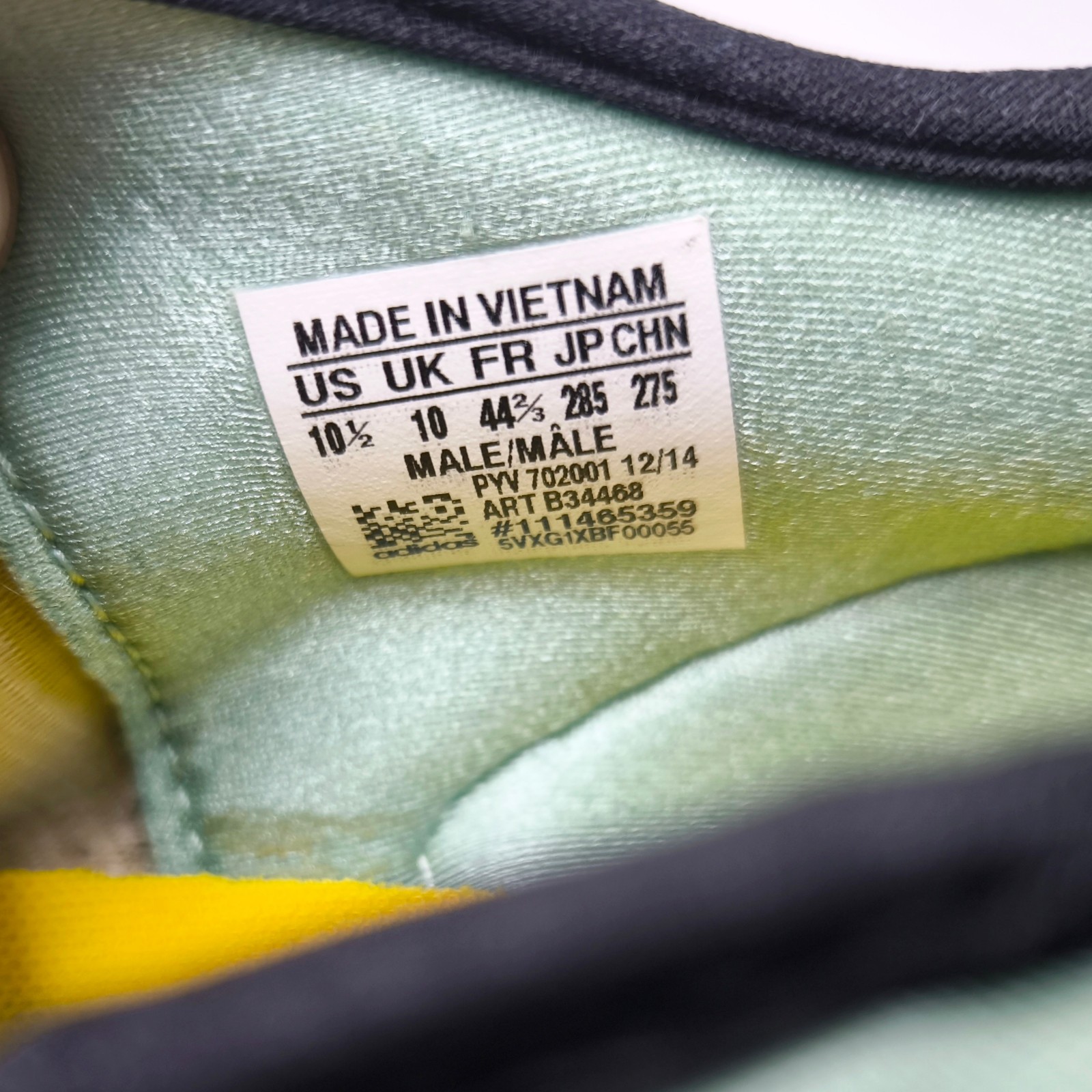 ________________________________________Marke: adidasModell: Chile / 451807Größe: Eur 45 1/3 / UK 10.5 / US 11Farbe: schwarz / gelb Zustand: getragen_______________________________________Beschreibung:Die Schuhe wurden getragen und befinden sich in einem absolut guten Zustand.Edition Brasil 1950.Es sind leichte Trage- und Gebrauchsspuren am Obermaterial, im Innenbereich sowie leichte Trage- und Gebrauchsspuren an den unteren Sohlen zu erkennen.Toller adidas Chile aus dem Jahr 2005 in einem getragenen und superguten Zustand.