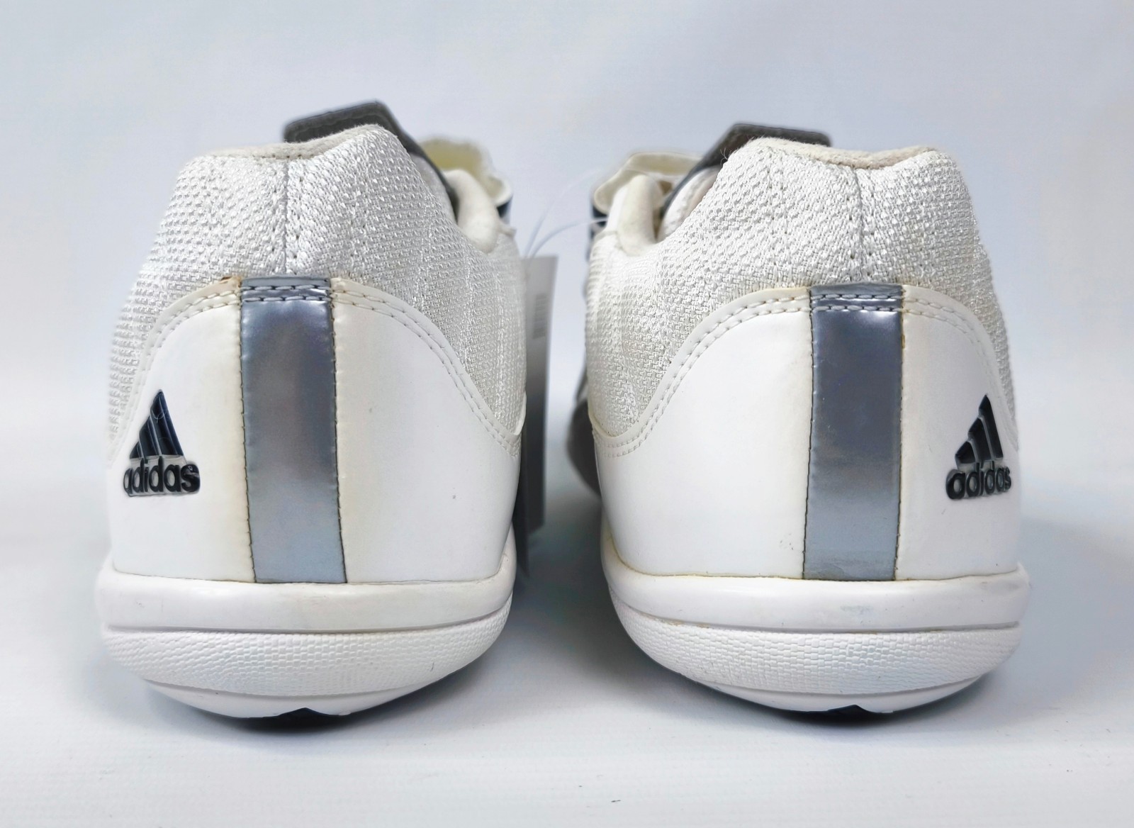 ________________________________________ Marke: adidasModell: adiStar Spikes Olympia 2008 / 915411Größe: UK 10.5 / US 11 / Eur 45 1/3Farbe: weiß / schwarz / silber Zustand: ungetragen ________________________________________ Beschreibung:Die Schuhe sind neu und ungetragen im Karton.Track and Field Spike Schuh für Olympia 2008 in Beijing.Schuhe habe leichte Lagerspuren, sind aber ungetragen.Sehr sehr leichter Athletic Schuh. ________________________________________ Obermaterial:100% Synthetic