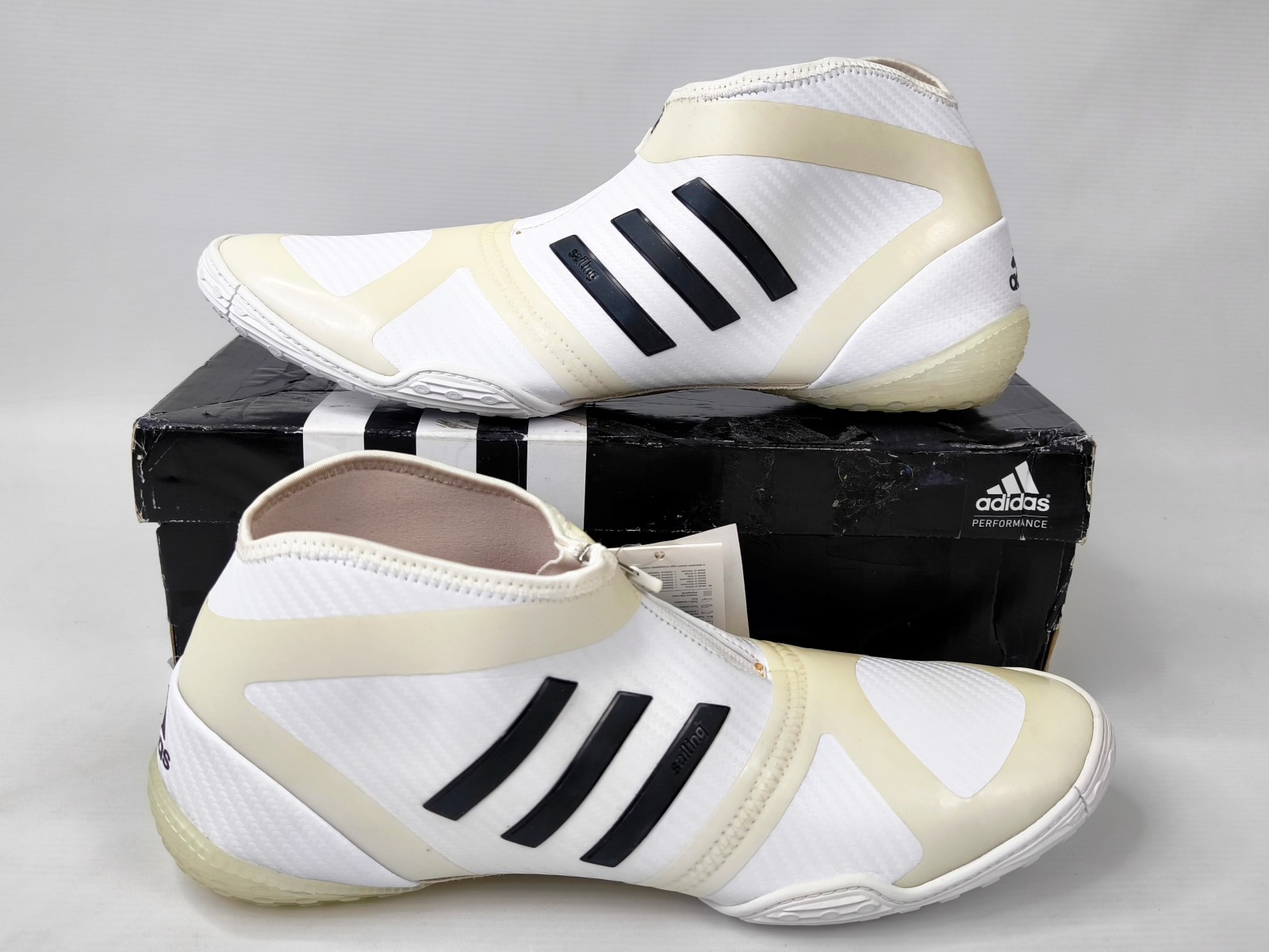 ________________________________________Marke: adidasModell: Tygun / 021439Größe: UK 8 - UK 10.5 Farbe: schwarz / silber Zustand: neu und ungetragen_______________________________________ Beschreibung:Die Schuhe sind neu und ungetragen im Karton.Ein adidas Boxschuh Modell aus dem Jahr 2003.Absolut ungetragen.