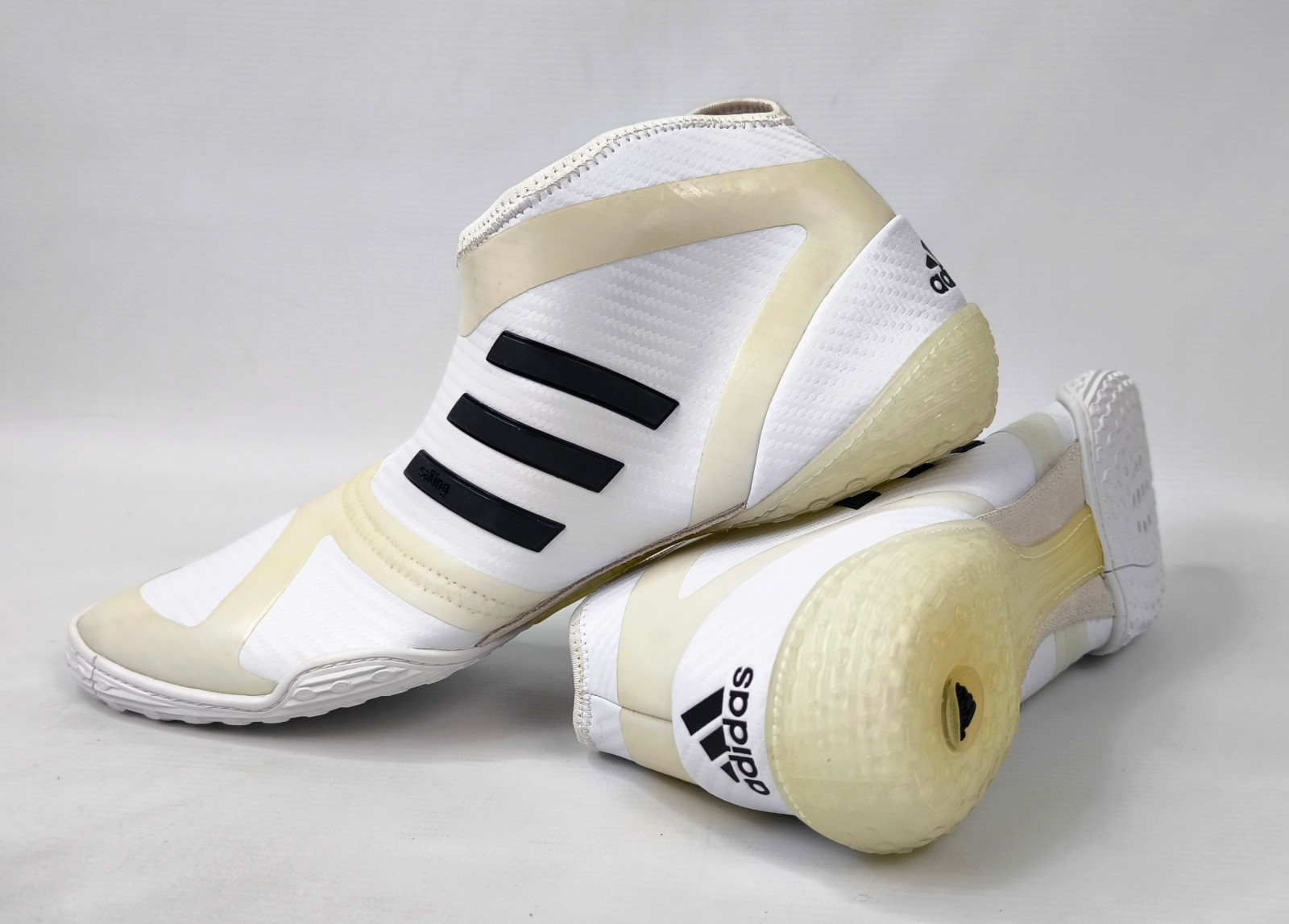 ________________________________________ Modell: Canvas WrestlingGröße: UK 7 / US 7.5 / Eur 40 2/3Farbe: rot / weiß Zustand: gebraucht ________________________________________ Beschreibung:Der Schuh wurde getragen und befindet sich in einem sehr schönen Zustand.Leichte Trage- und Gebrauchsspuren am Obermaterial, den Hacken und den unteren Sohlen.Nichts kaputt oder beschädigt.adidas Wrestlingschuhe aus dem Jahr 2003. ________________________________________ Obermaterial:100% Synthetic
